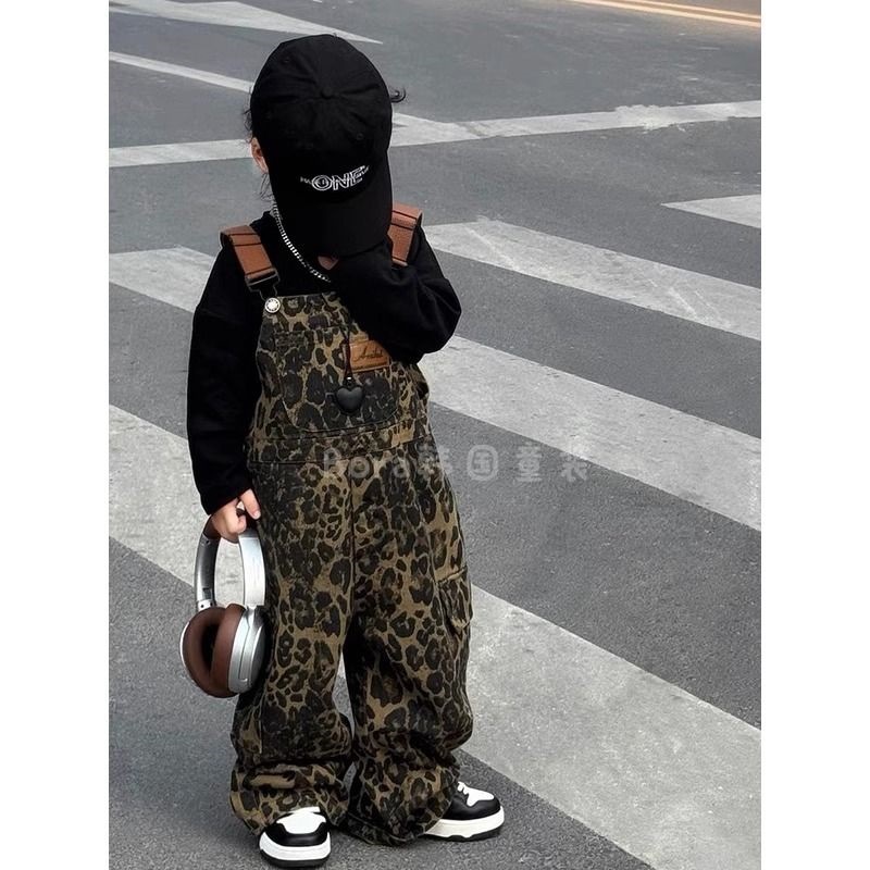 ダークブラウンのカーゴプリントオーバーオール
