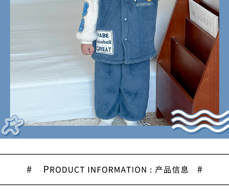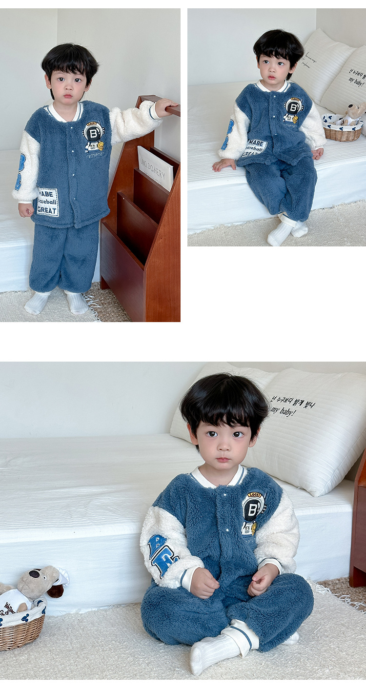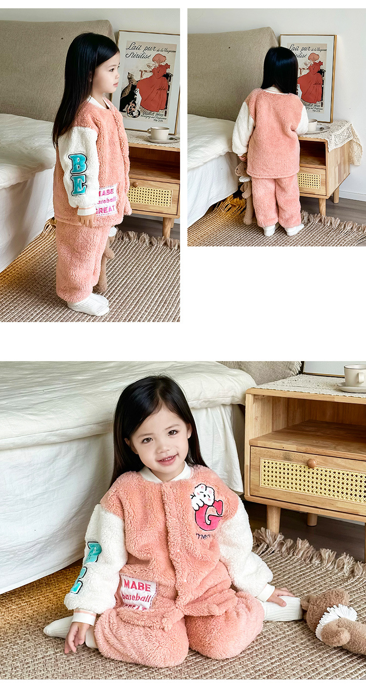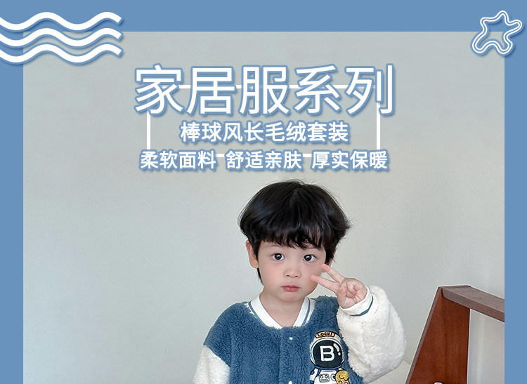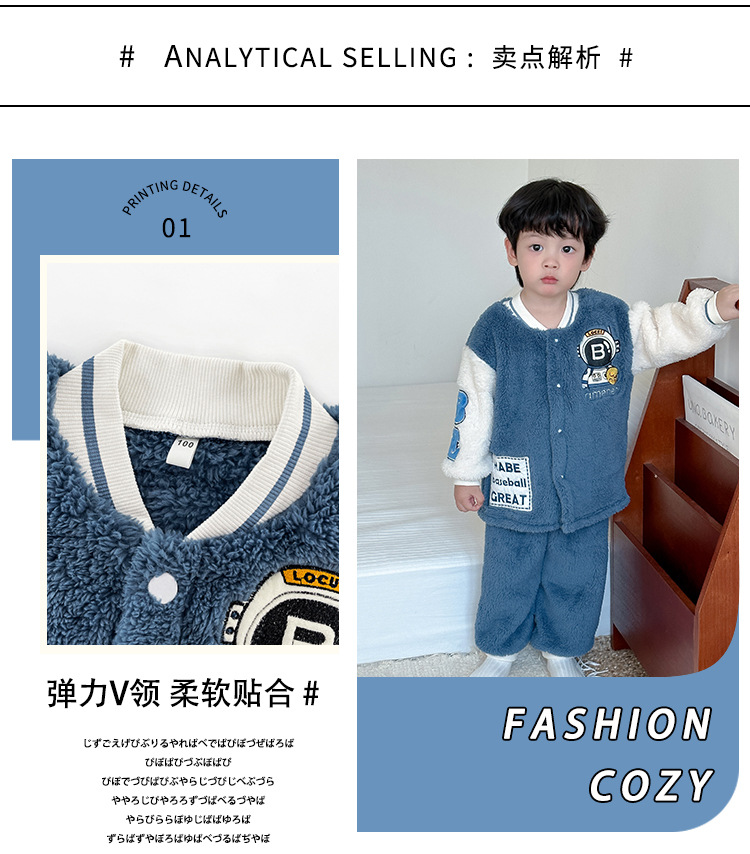 100-160cm子供の兄のスポーツ風野球服冬のサンゴの毛の保温の女の子の洋風のカーディガンのパジャマ