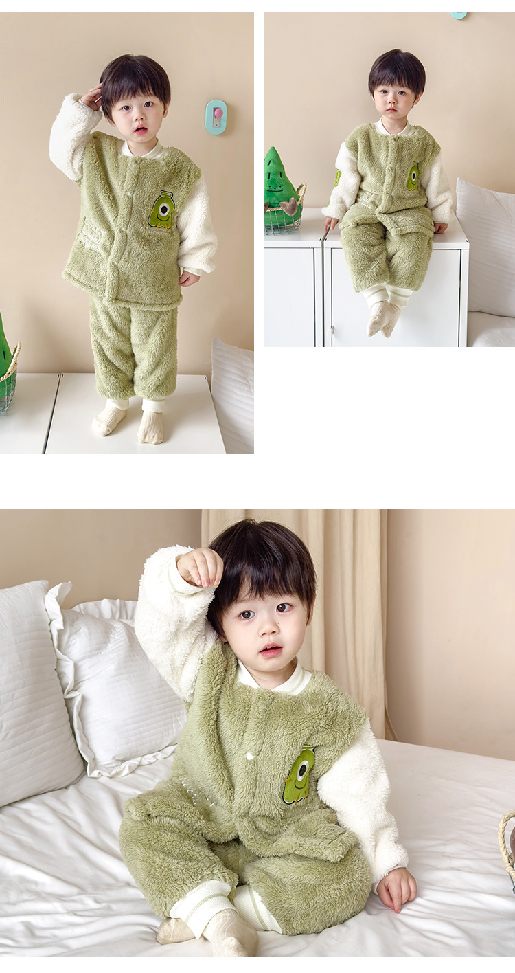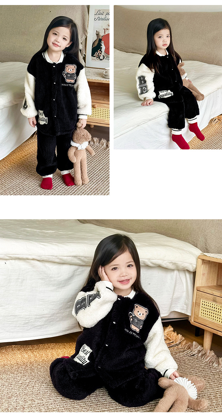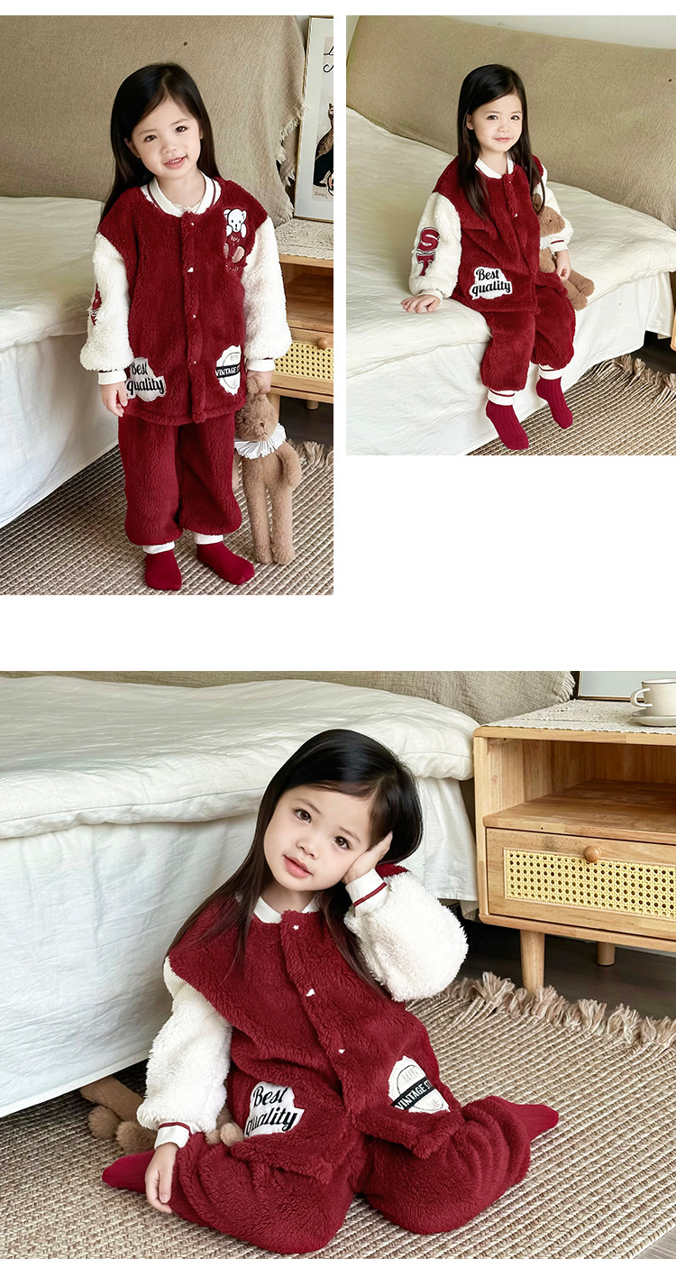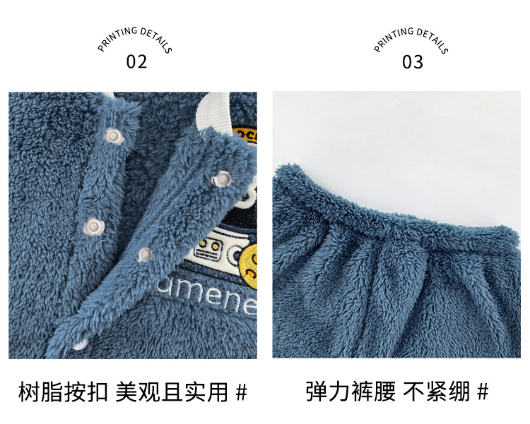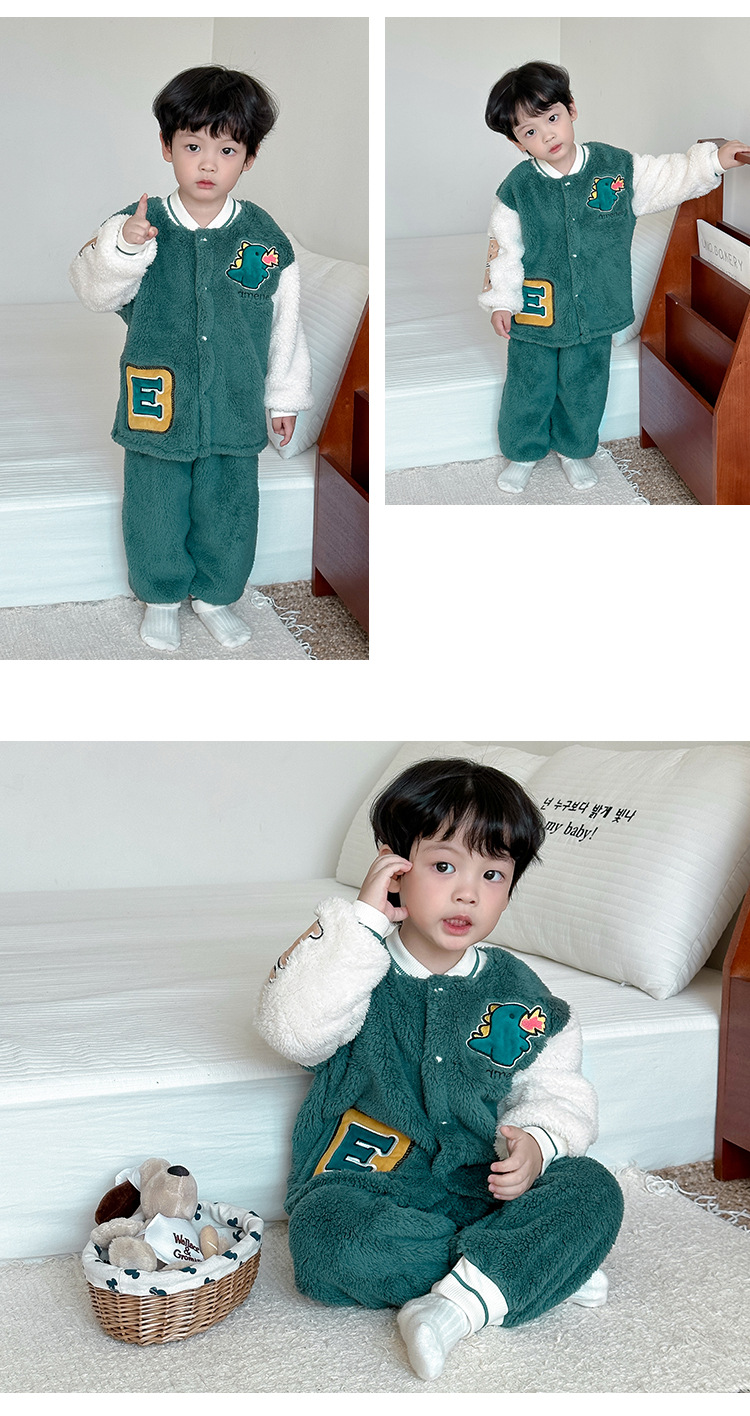 100-160cm子供の兄のスポーツ風野球服冬のサンゴの毛の保温の女の子の洋風のカーディガンのパジャマ