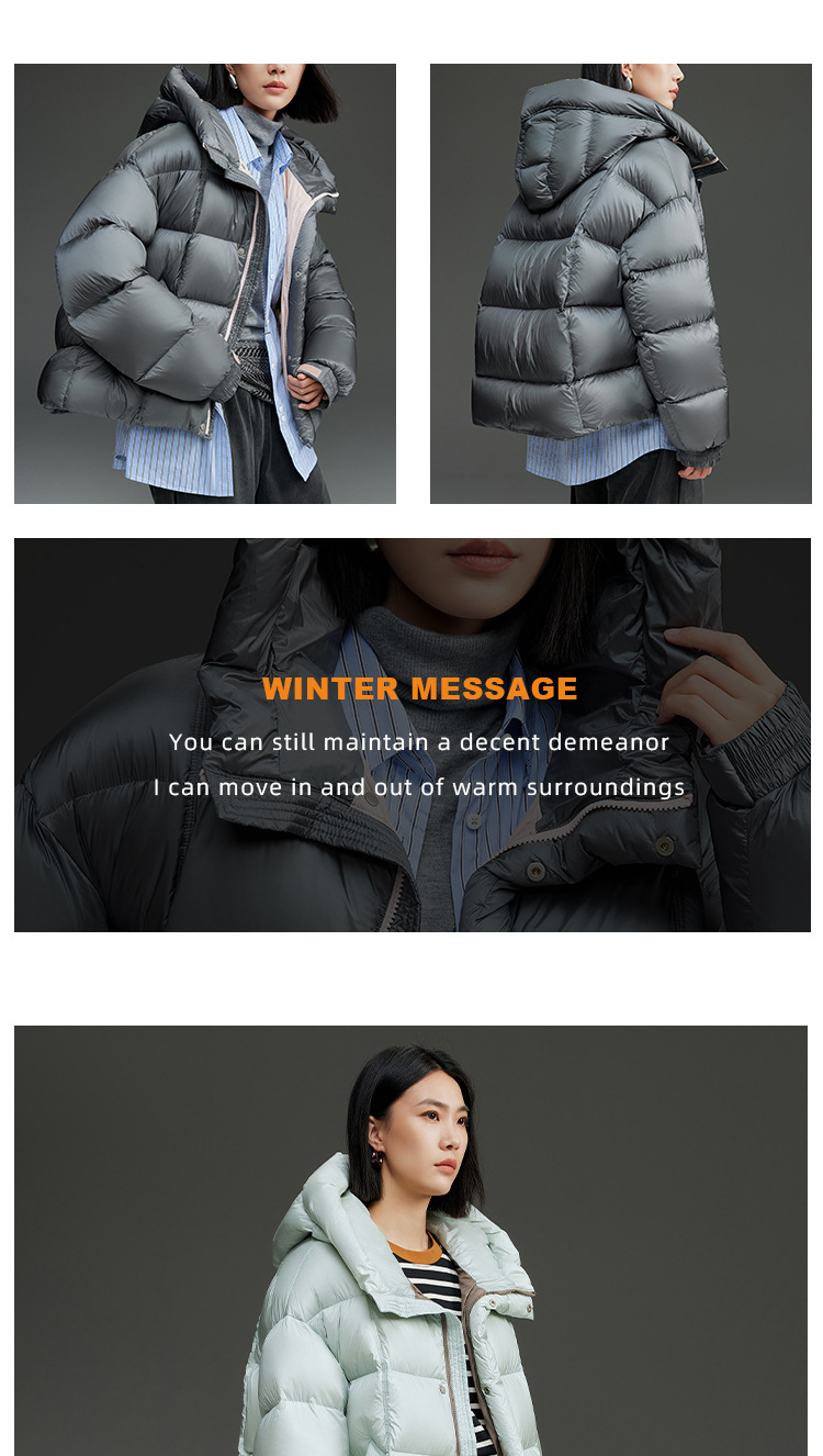 90 ホワイトグースダウンダウンジャケット女性のハイエンドの女性のショートフード付き暖かいハイエンド肥厚ジャケット冬 25 新しいスタイル