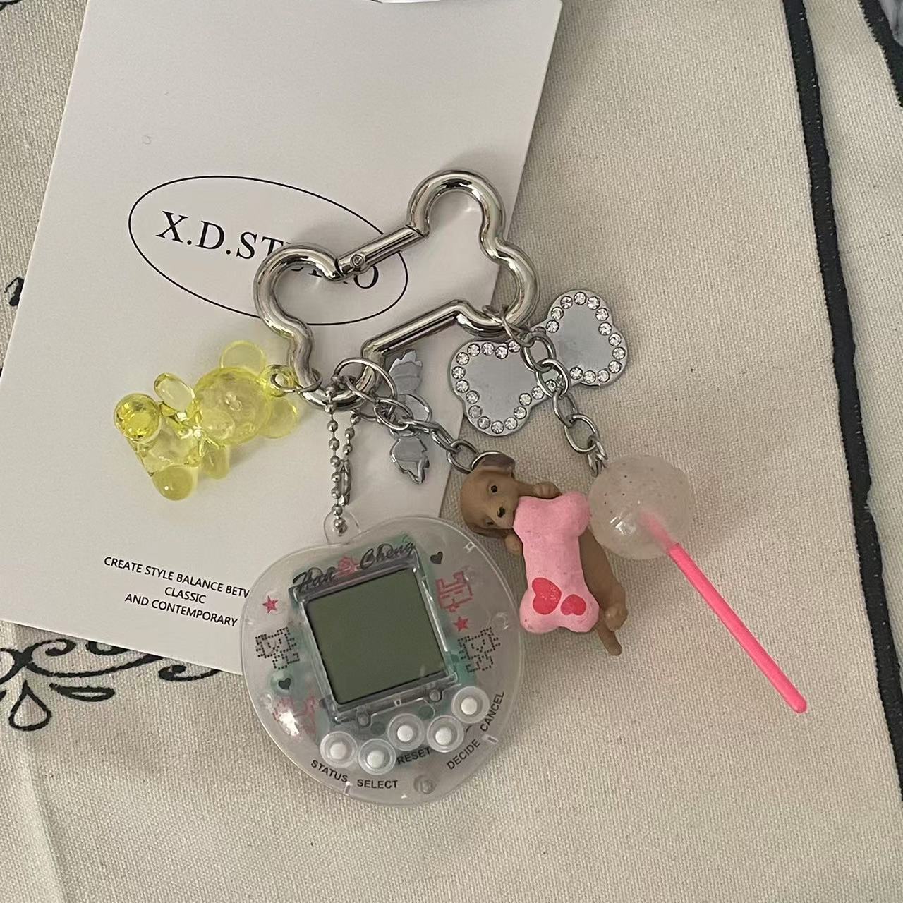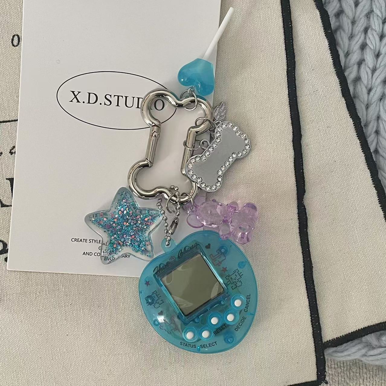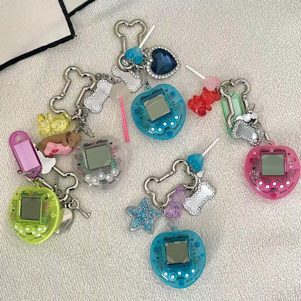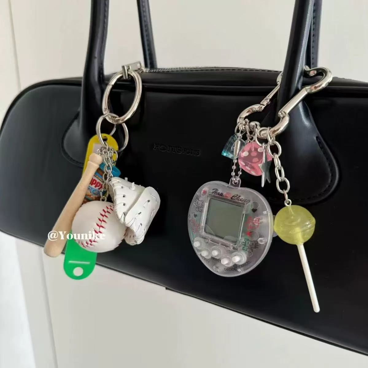 ホワイトゲーム機【ハグドッグ】+ジェムステッカー,グリーンゲーム機【ラブロック】+ジェムステッカー,ブルーゲーム機【ペンタグラム】+ジェムステッカー,ローズレッドゲームコンソール[レッドベア]+ジェムステッカー,パープルゲーム機[白子猫]+ジェムステッカー,ホワイトベースボールピーナッツバターバッグハンギングキーホルダー,茶色の野球ピーナッツバターバッグ吊り下げキーホルダー