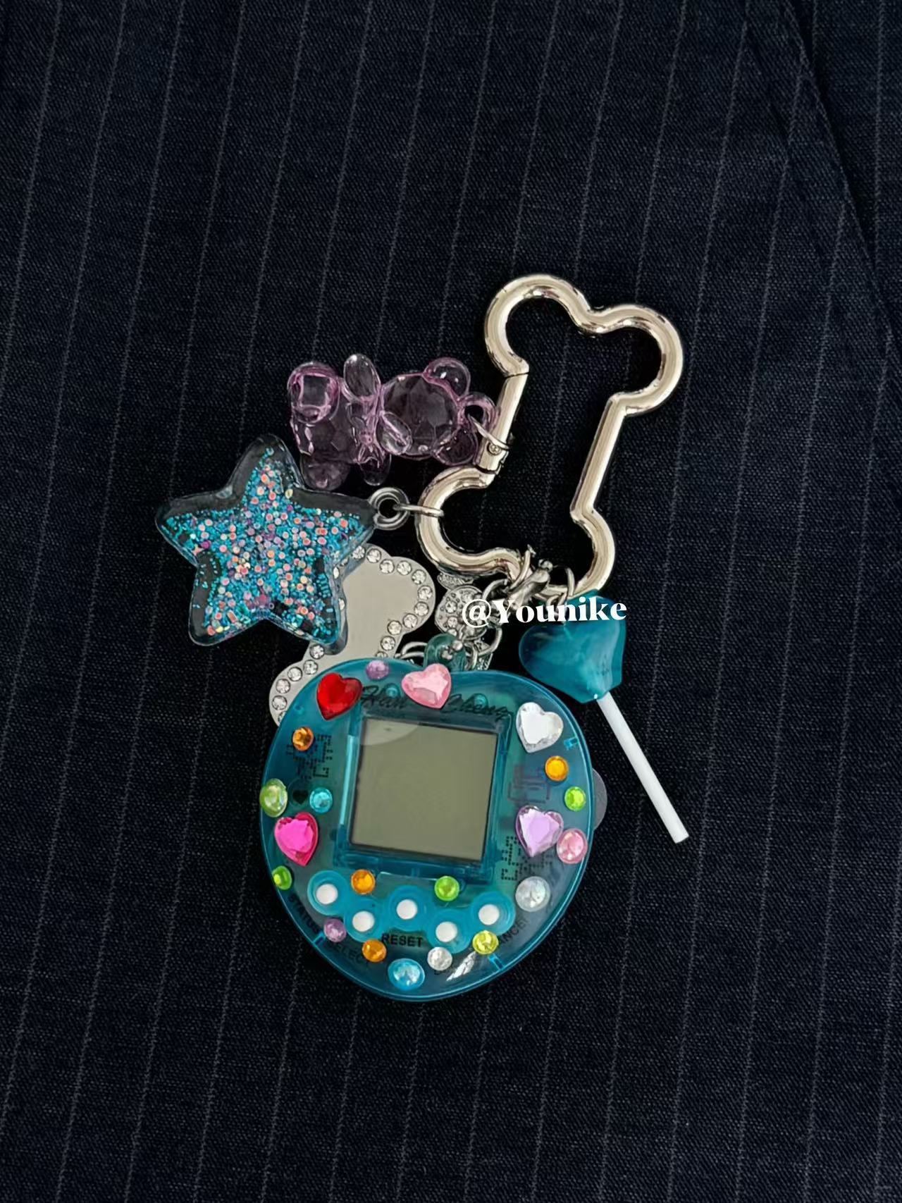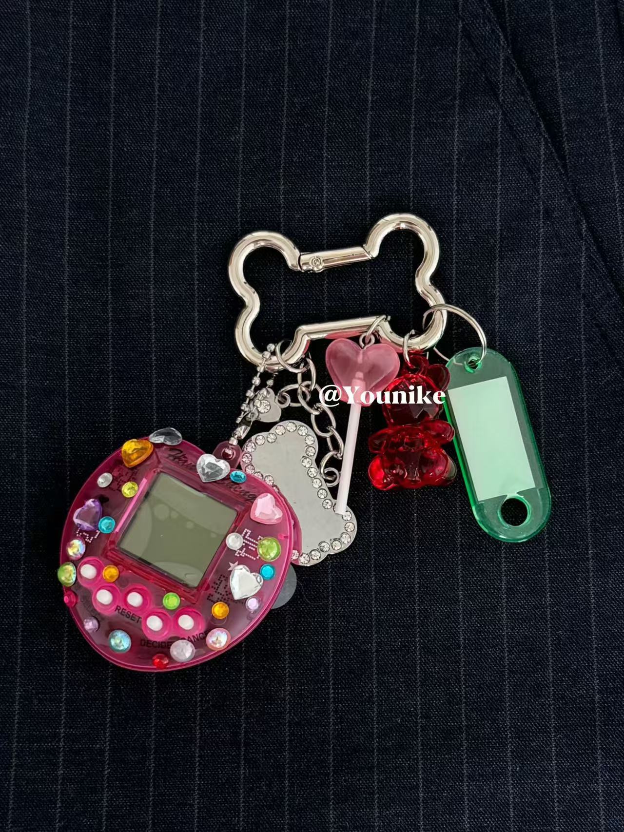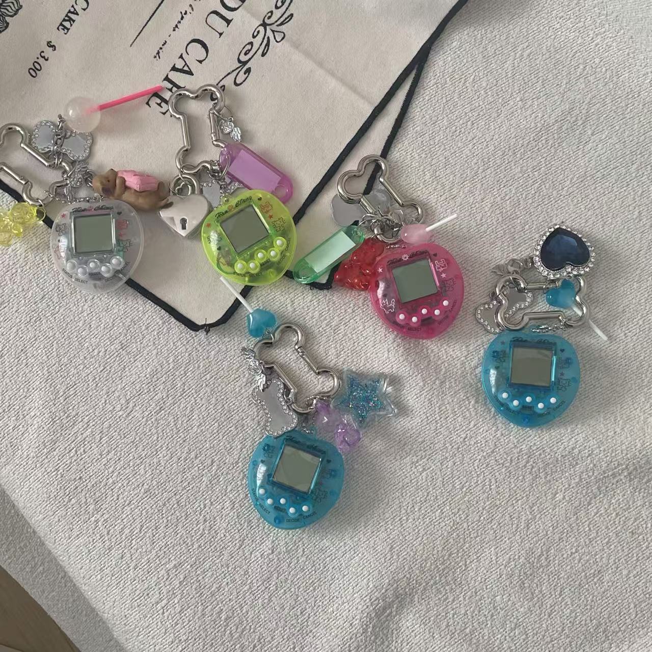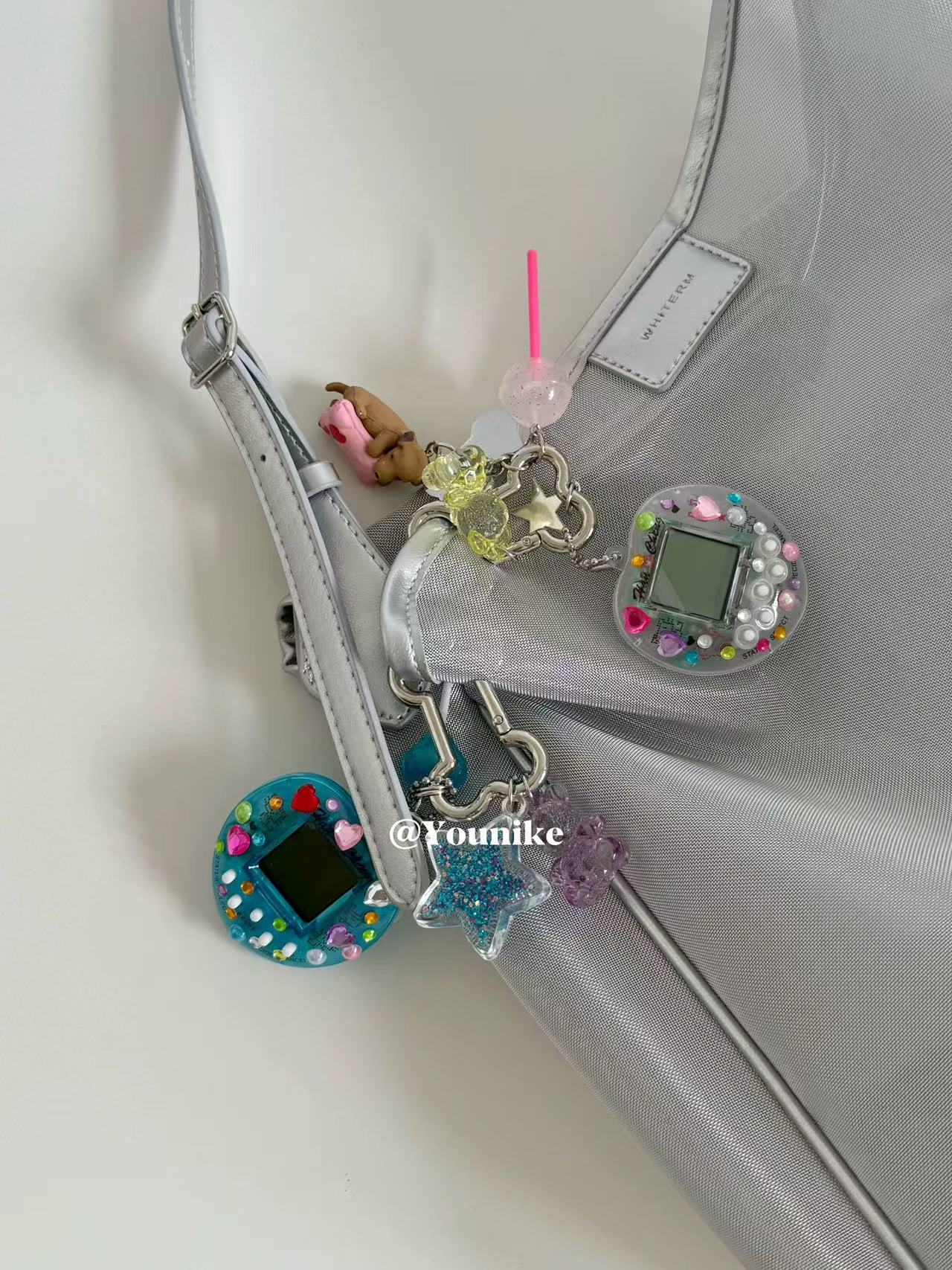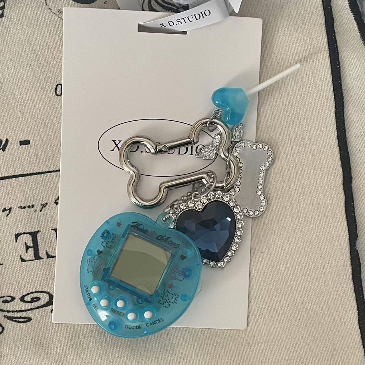 ホワイトゲーム機【ハグドッグ】+ジェムステッカー,グリーンゲーム機【ラブロック】+ジェムステッカー,ブルーゲーム機【ペンタグラム】+ジェムステッカー,ローズレッドゲームコンソール[レッドベア]+ジェムステッカー,パープルゲーム機[白子猫]+ジェムステッカー,ホワイトベースボールピーナッツバターバッグハンギングキーホルダー,茶色の野球ピーナッツバターバッグ吊り下げキーホルダー