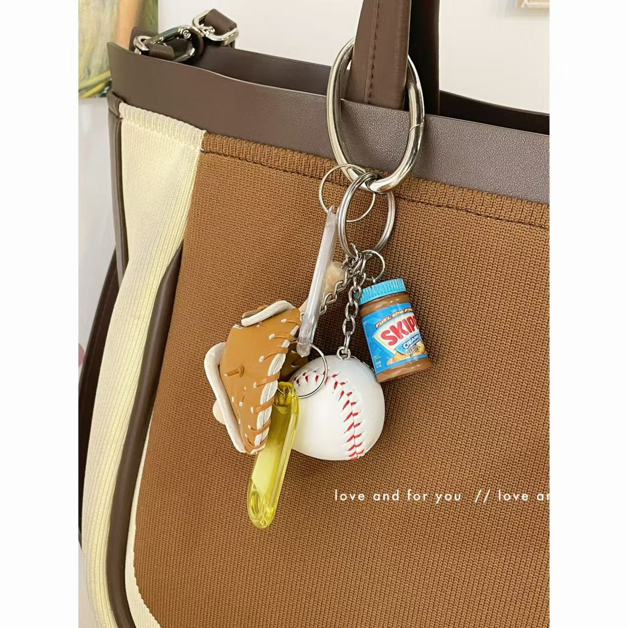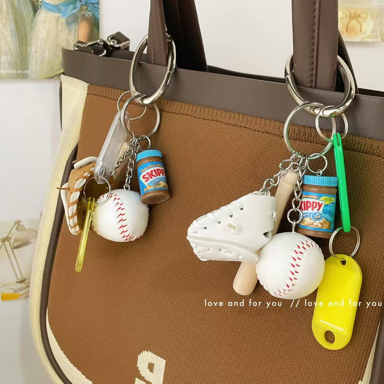 ホワイトベースボールピーナッツバターバッグハンギングキーホルダー