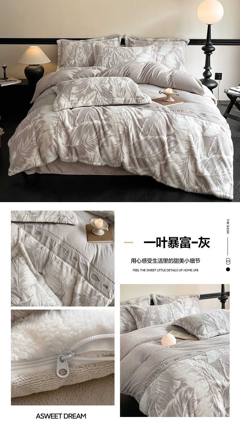 L 一枚の葉が金持ちになる - グレー [高級寝具、独創的な職人技、独占的な保護、質の高い生活]