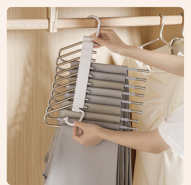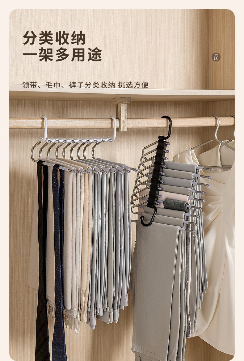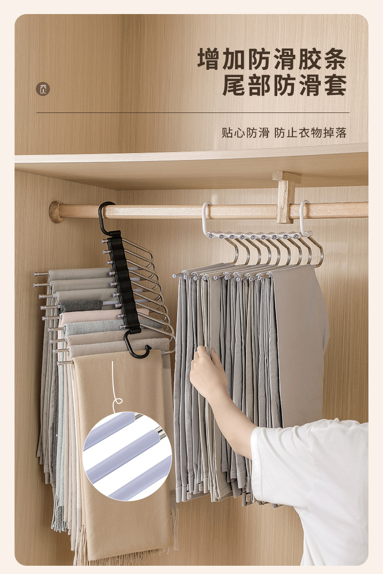 ステンレス多層ズボンラック家庭用多機能折りたたみタンスズボン収納神器無痕滑り止め収納棚
