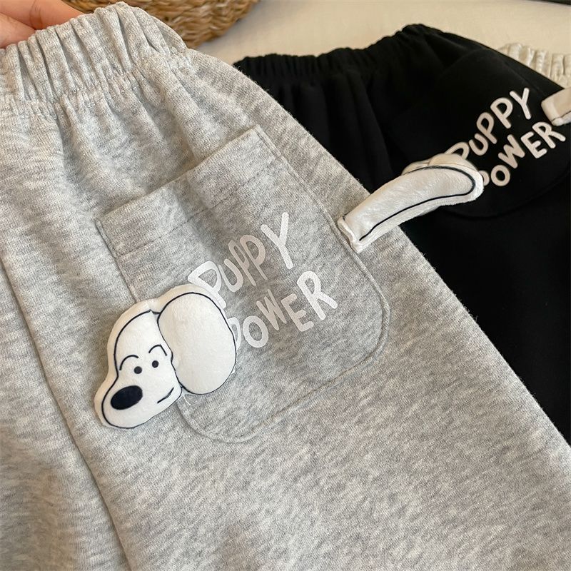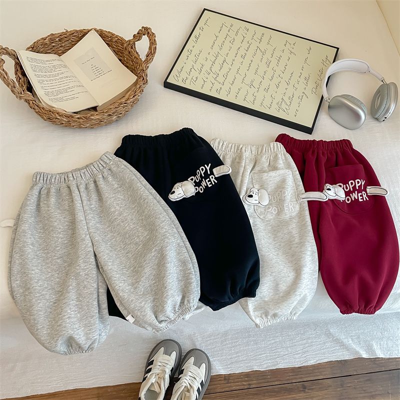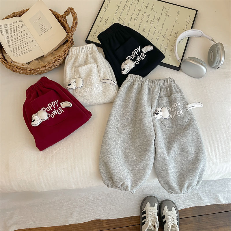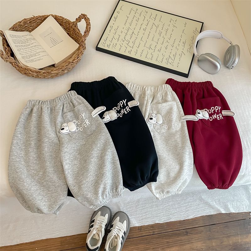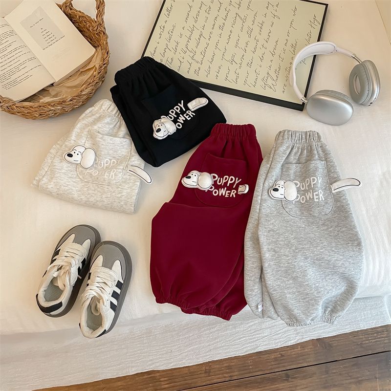 男女子供2025春秋新作可愛いファッション子犬ポケット衛ズボン秋冬スタイル洋気超萌えカジュアルズボン