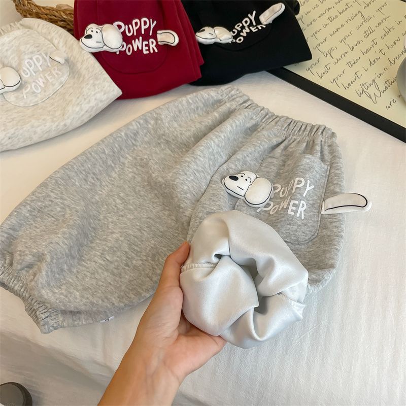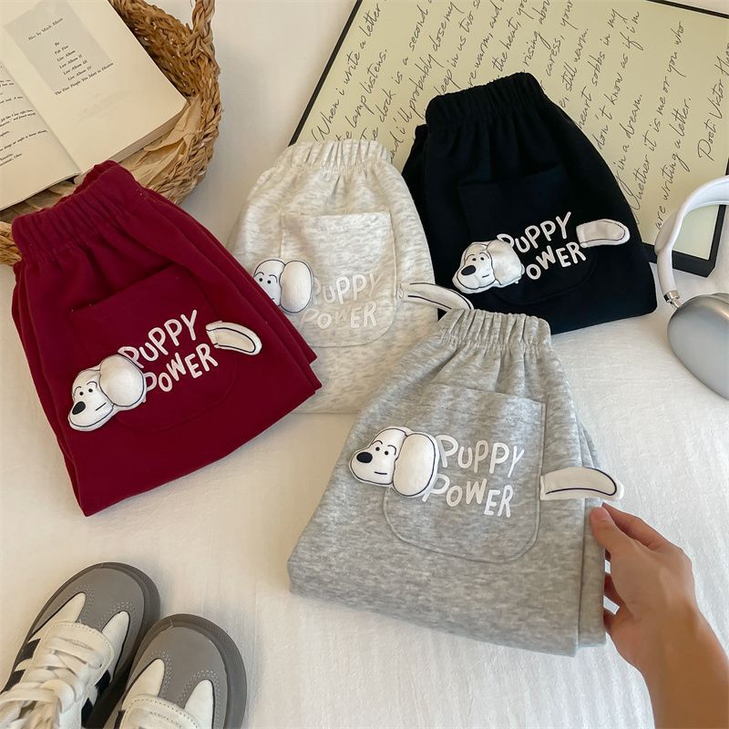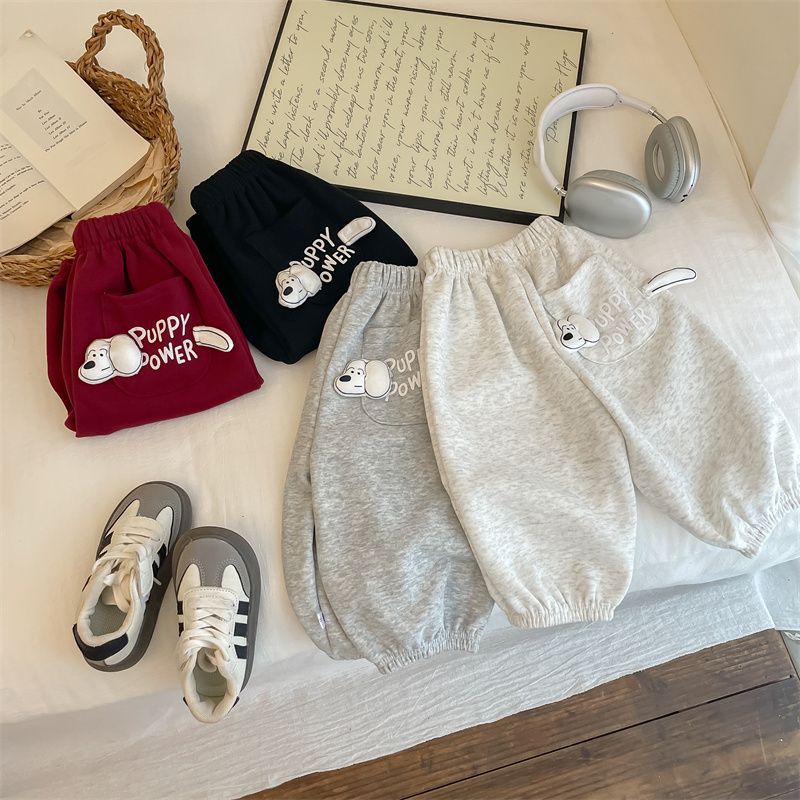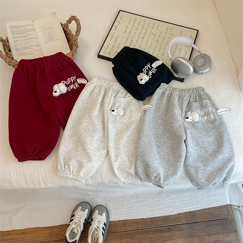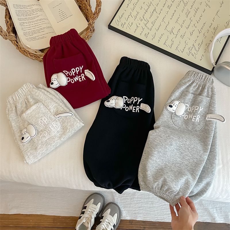 男女子供2025春秋新作可愛いファッション子犬ポケット衛ズボン秋冬スタイル洋気超萌えカジュアルズボン