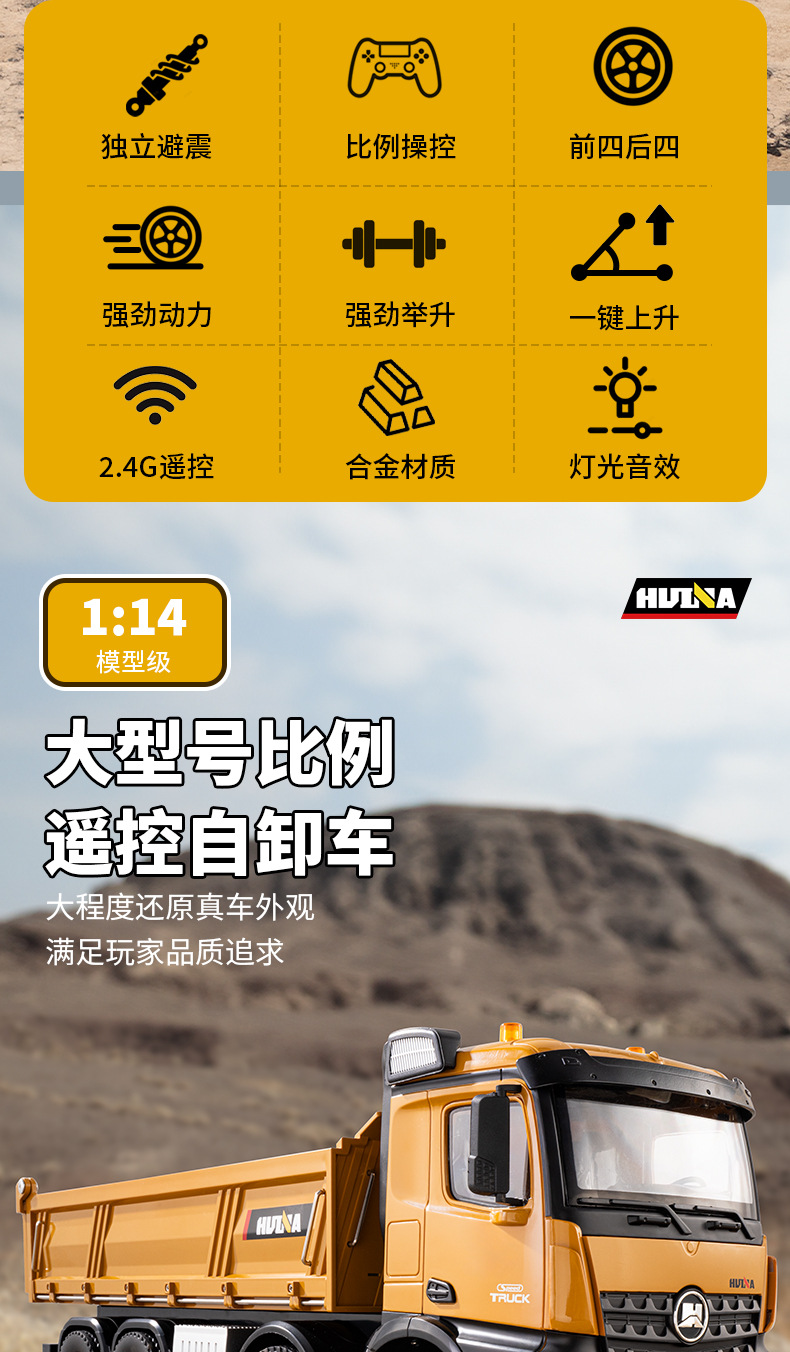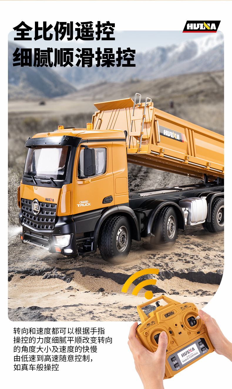 クロスボーダー新型汇納1536半合金重輸送ダンプトラック音光リモコン工事車少年玩具