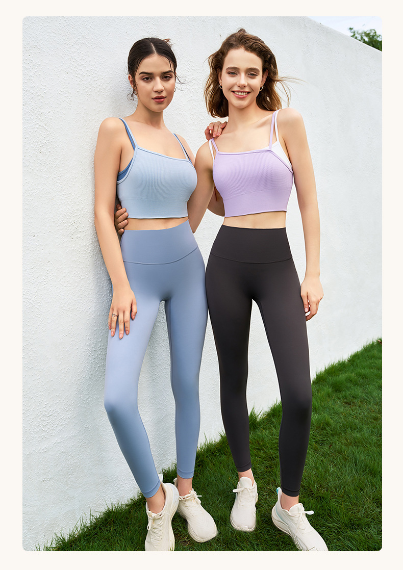 夏の新スタイル 2in1 自己完結型カップフェイクツーピースコントラストカラーテクスチャー屋外で着用可能ヨガバック下着アウターベスト