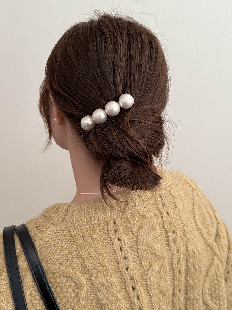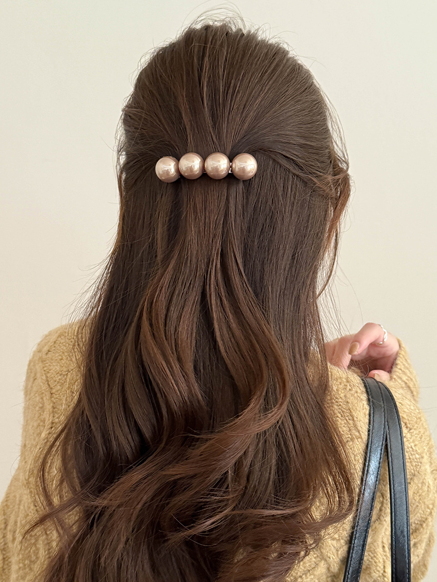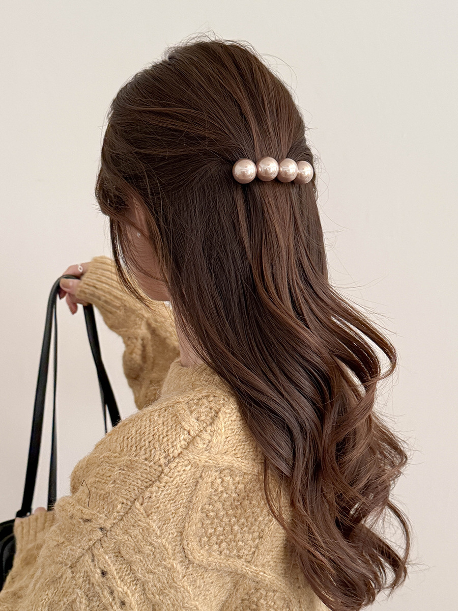 新商品の高級感のある大粒の真珠の一字のスプリングはシンプルな気質の髪飾りを挟みます。