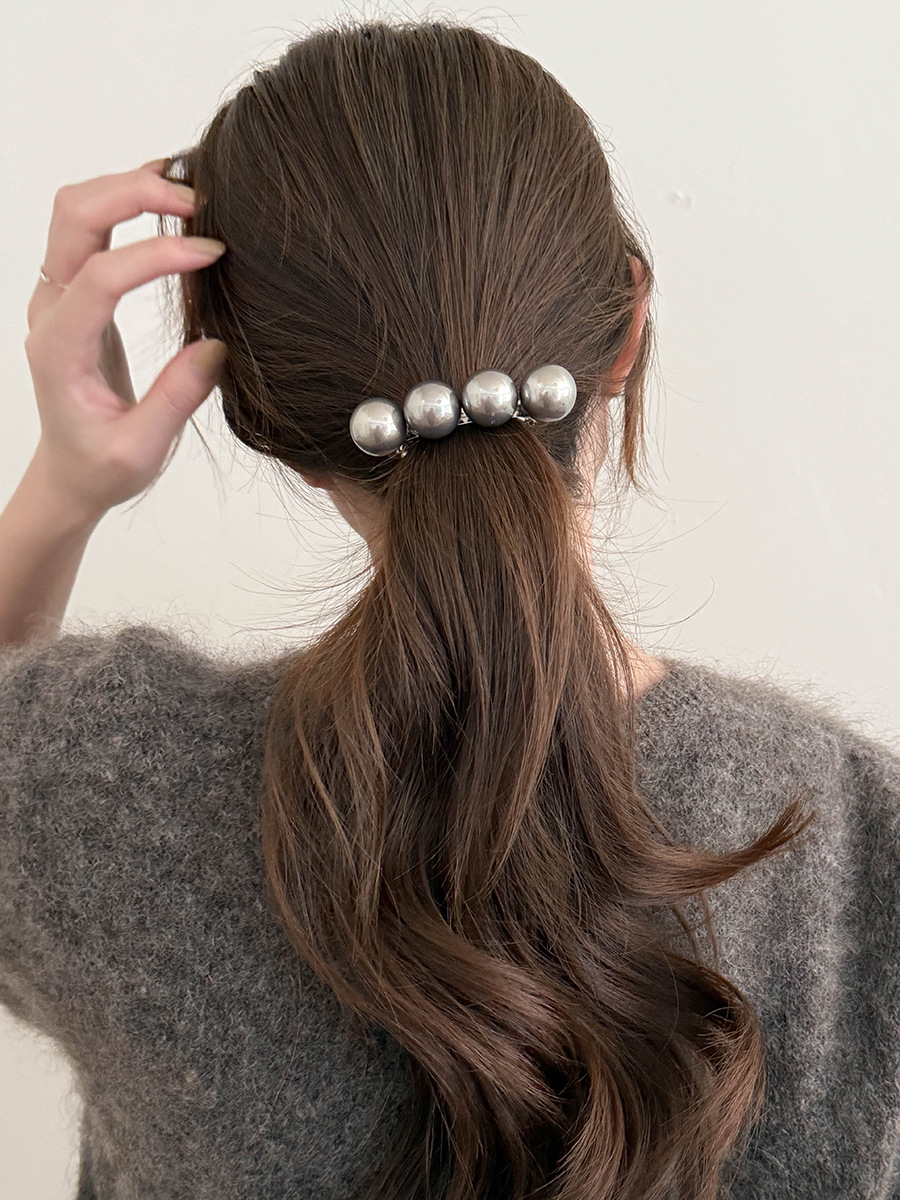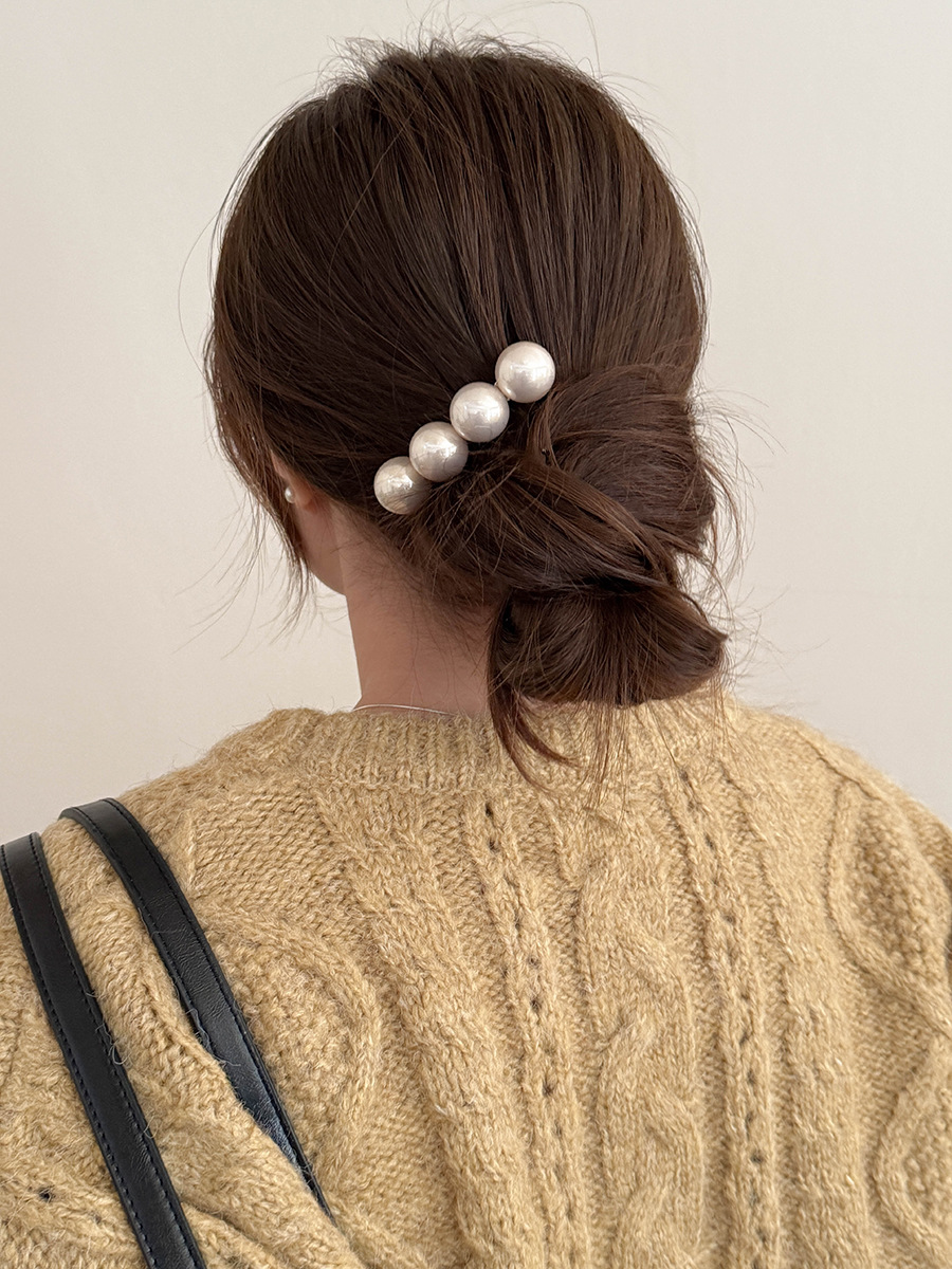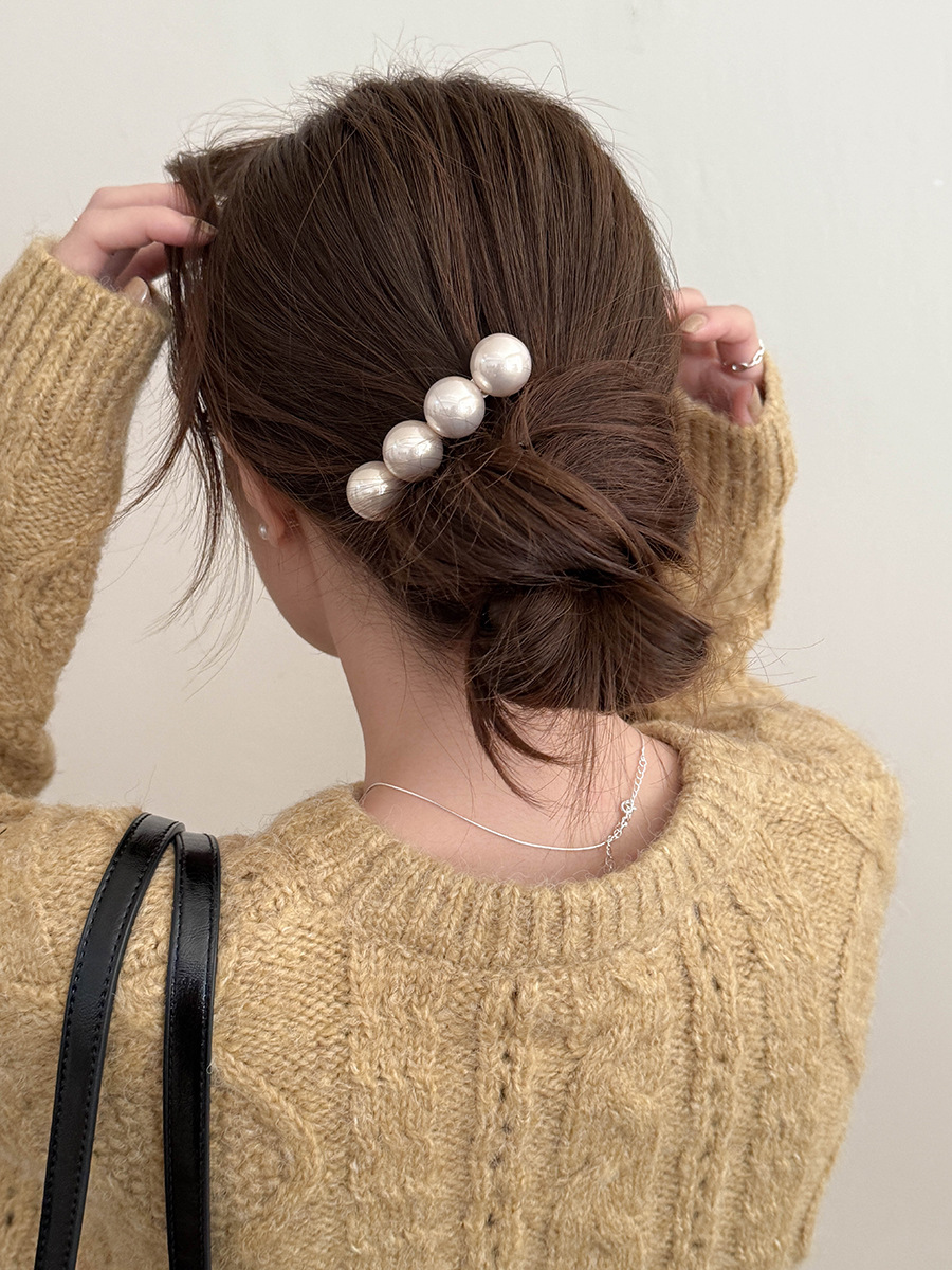 新商品の高級感のある大粒の真珠の一字のスプリングはシンプルな気質の髪飾りを挟みます。