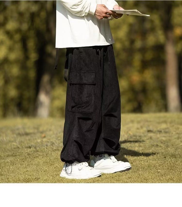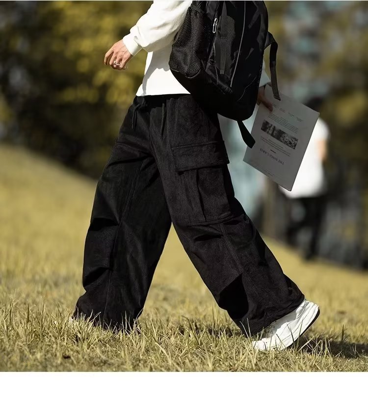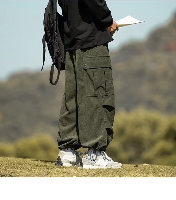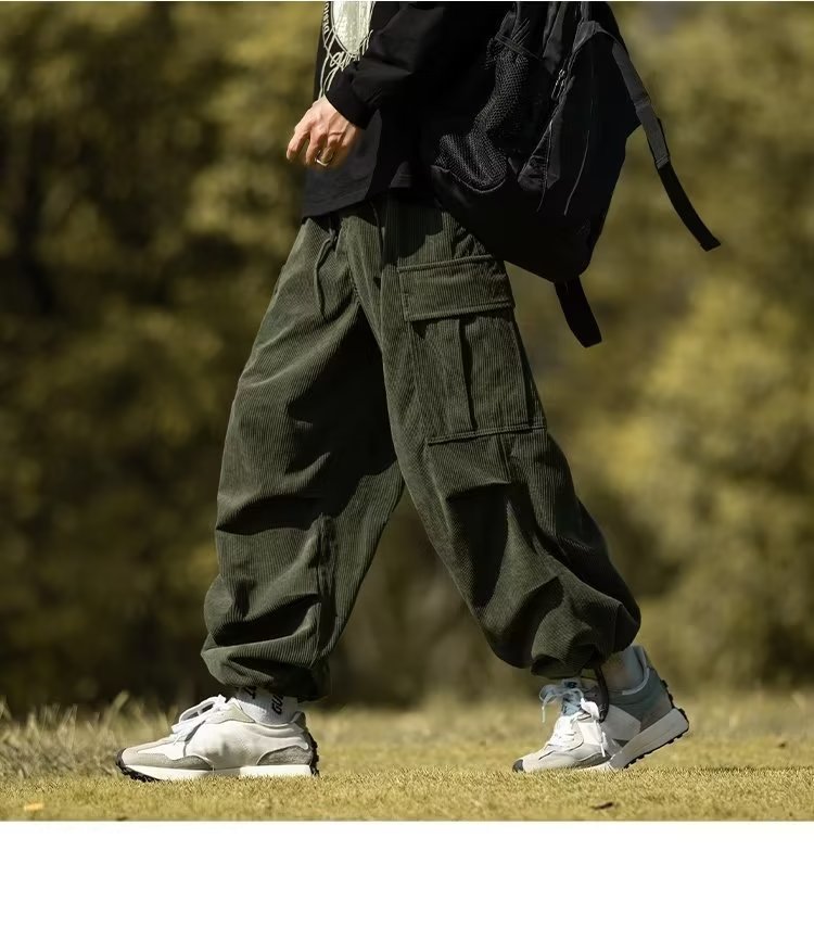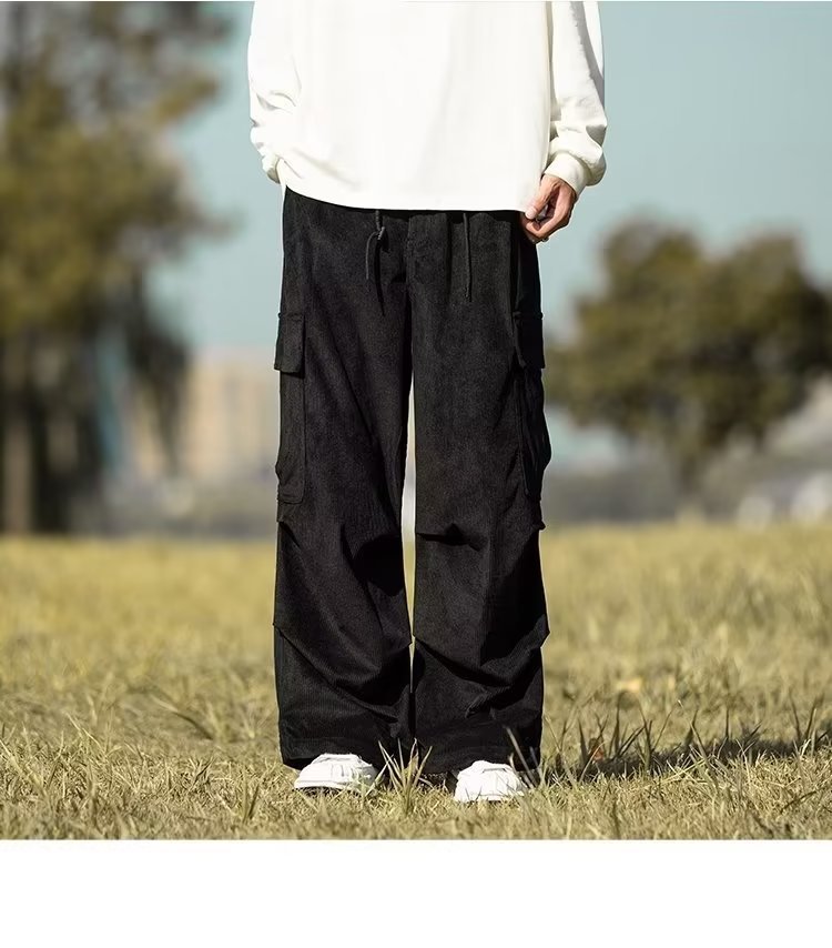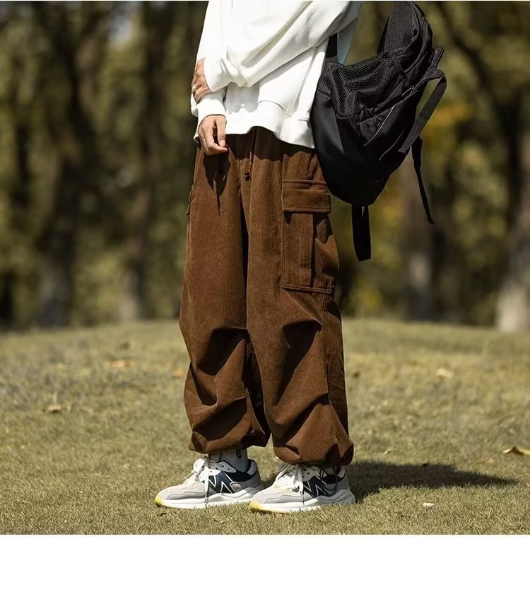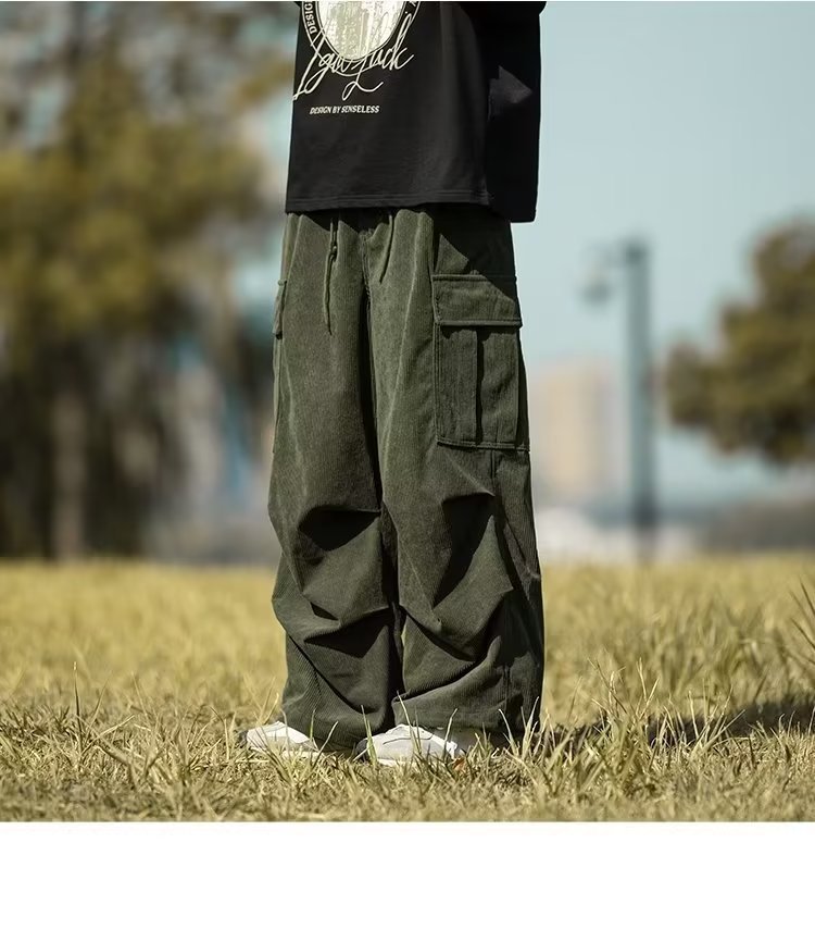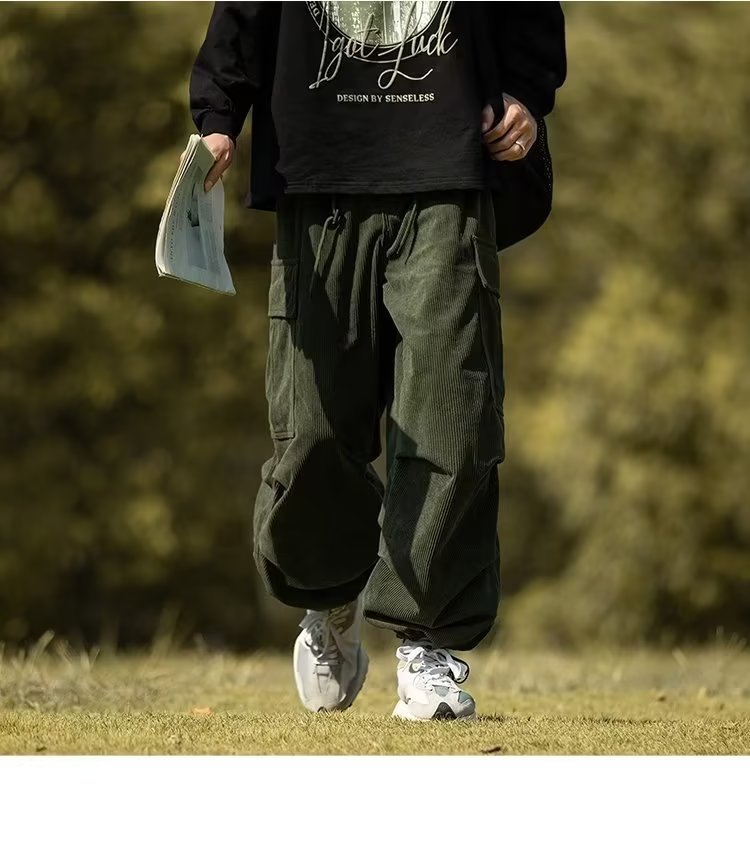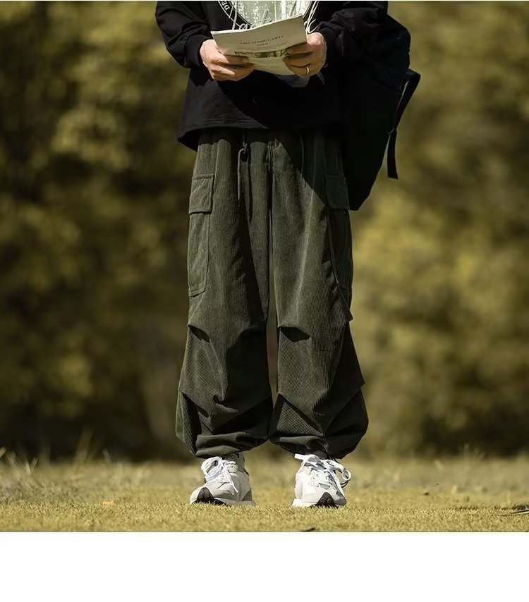 春と秋の新商品のファッションブランドの工装ズボンの男性2024日系のレトロな重ポンドのコーデュロイのカジュアルなズボンの大きいポケットの設計