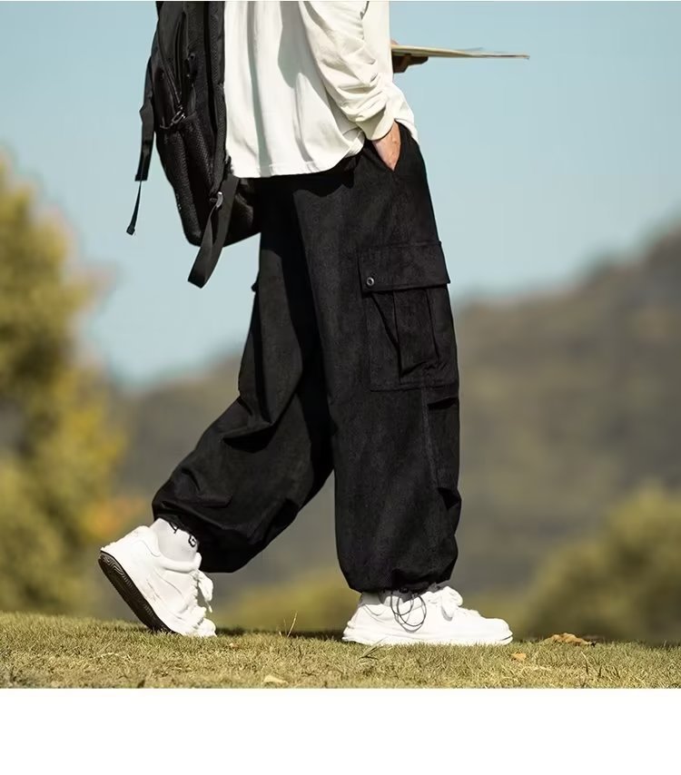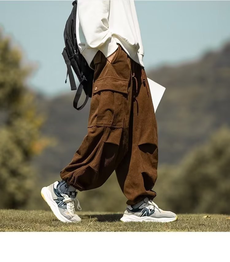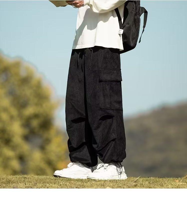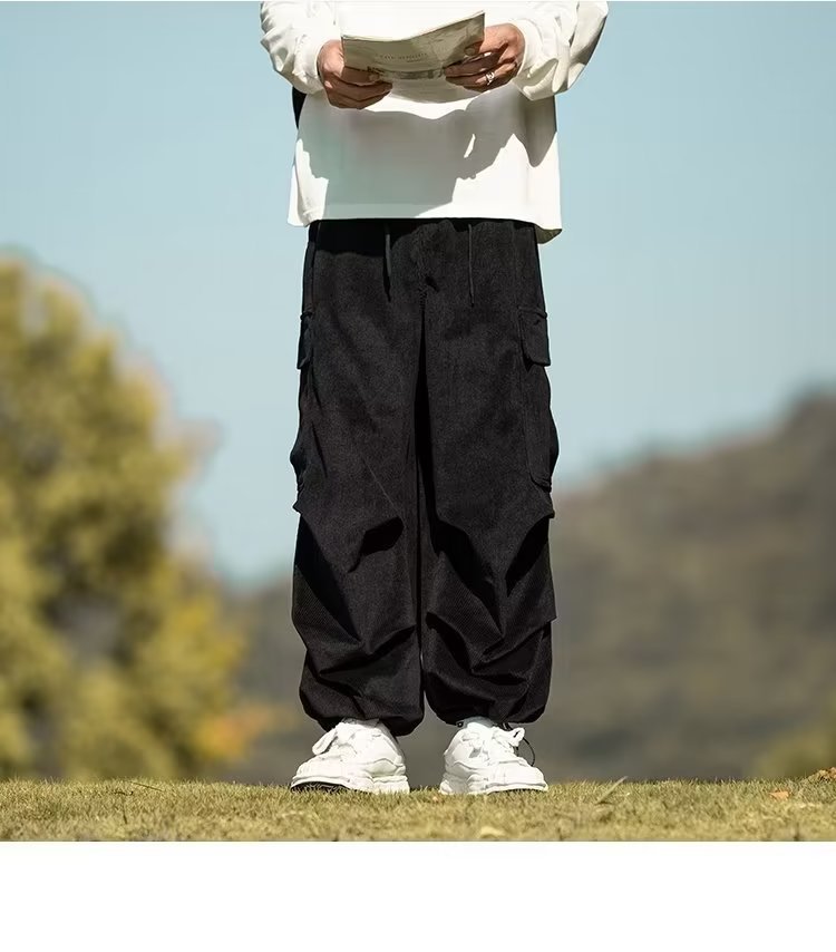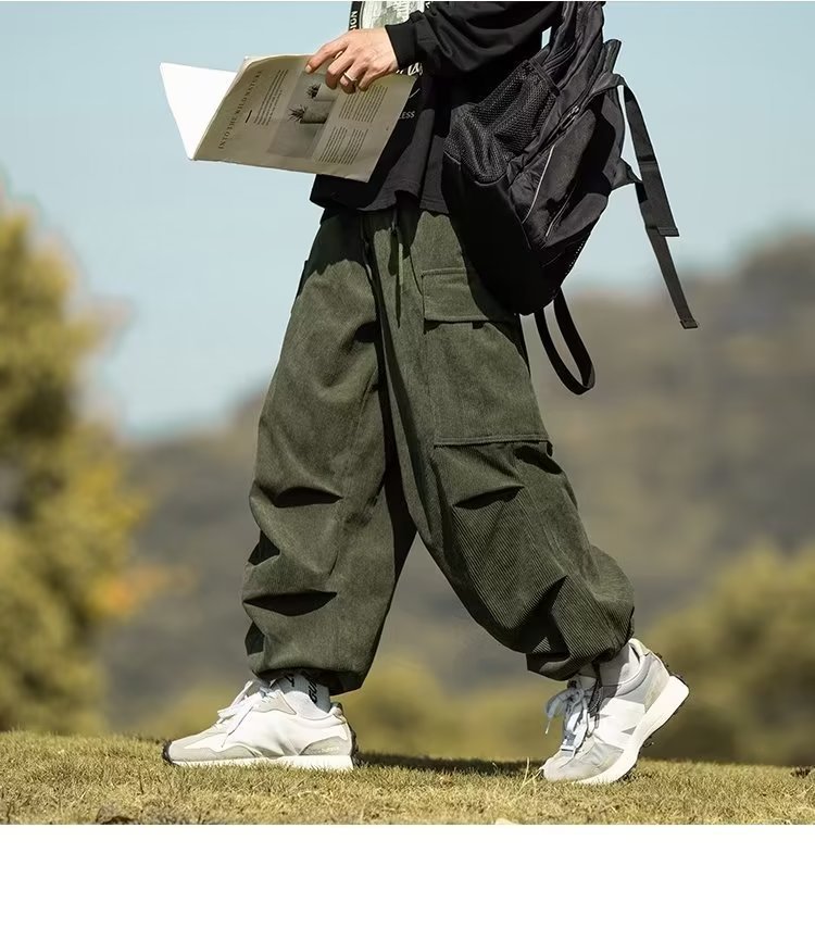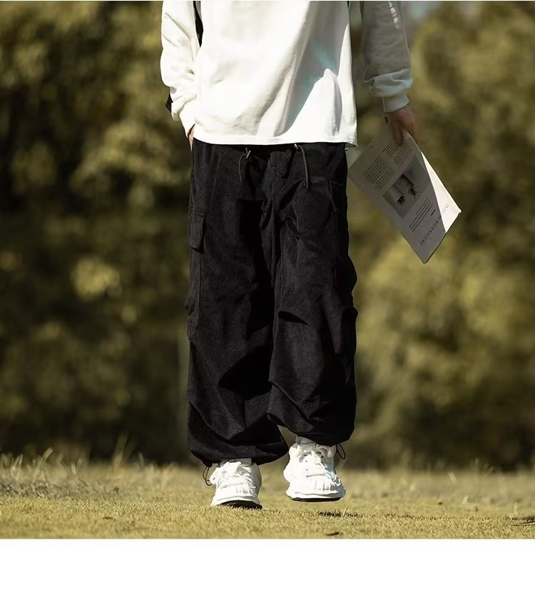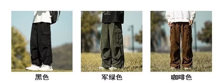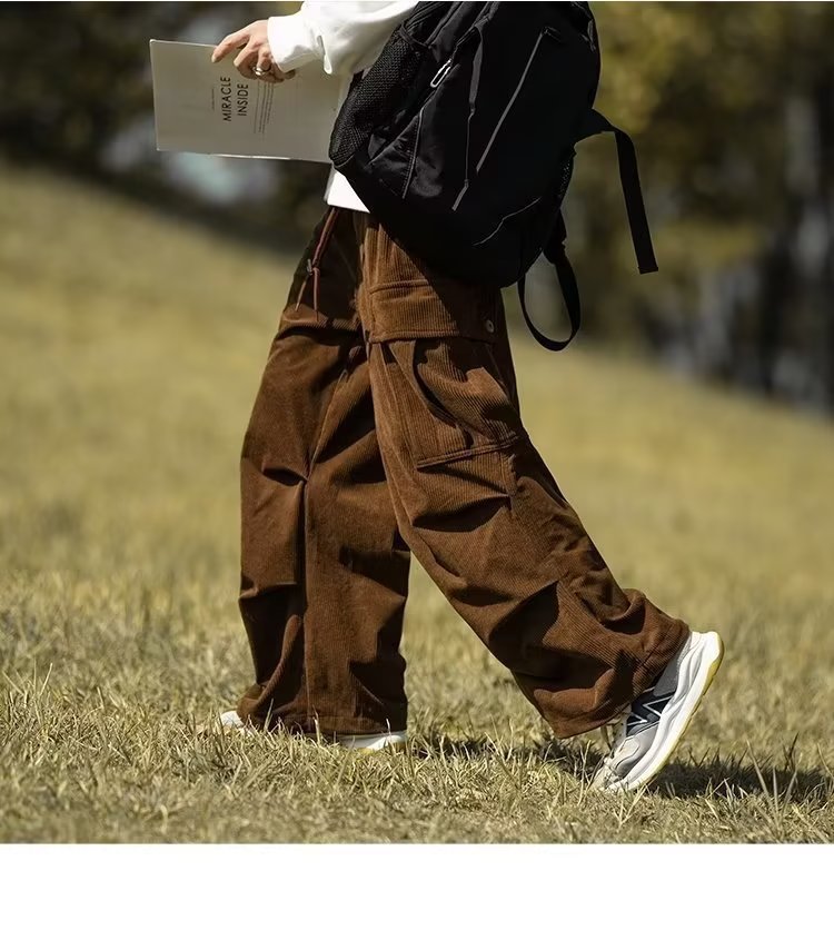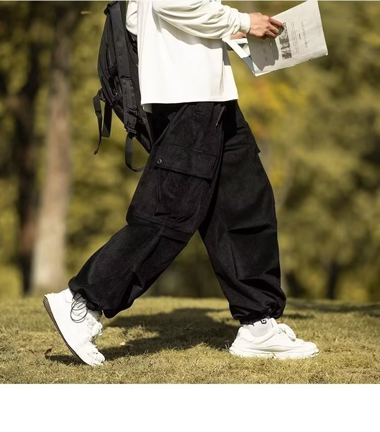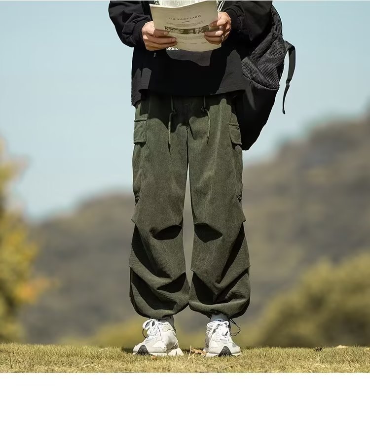 春と秋の新商品のファッションブランドの工装ズボンの男性2024日系のレトロな重ポンドのコーデュロイのカジュアルなズボンの大きいポケットの設計