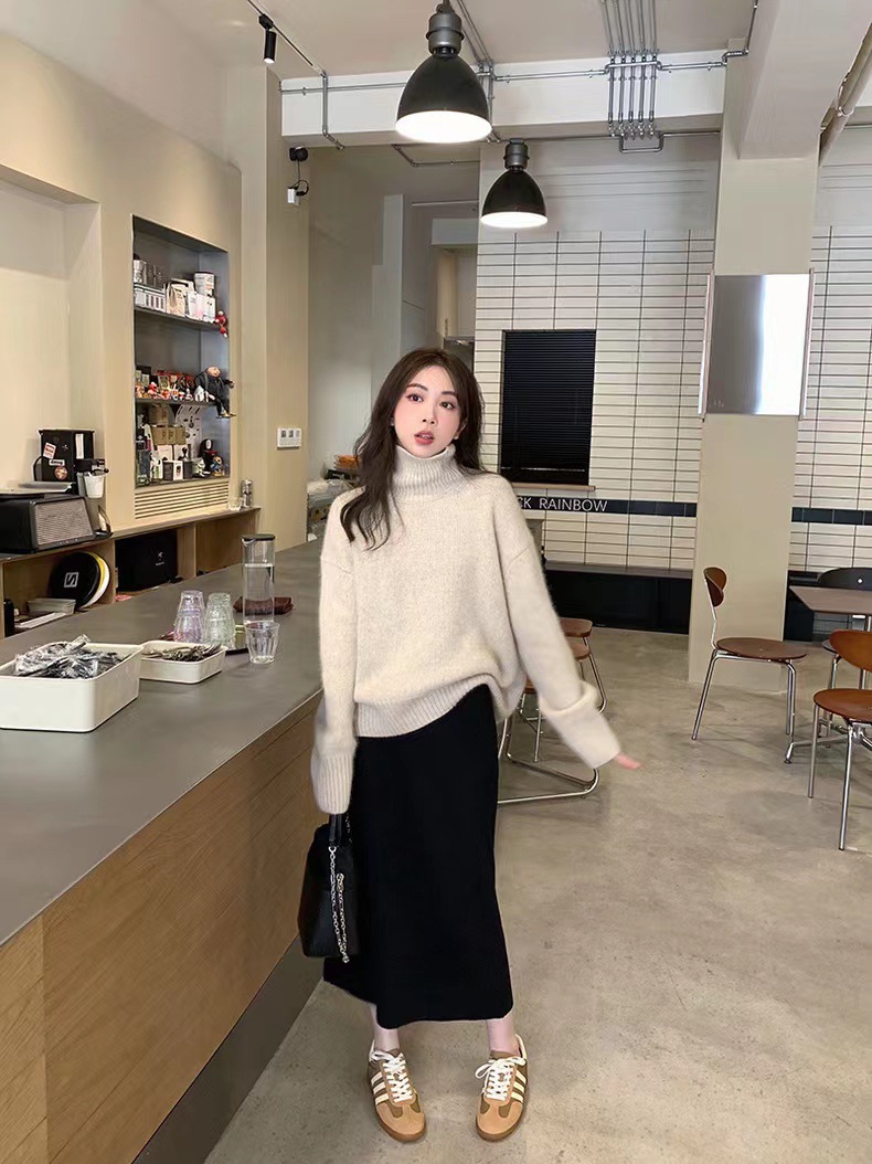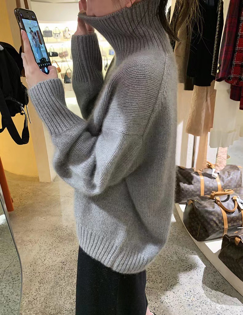 重磅羊绒衫女高领宽松休闲百搭针织慵懒风韩版毛衣加厚秋冬羊毛衫