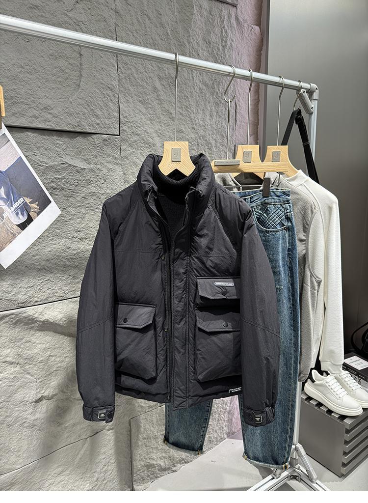 品質のシンボル! 杭州の高さ90% 白鴨絨毛秋冬装質感工装男性立襟ダウンジャケット潮002