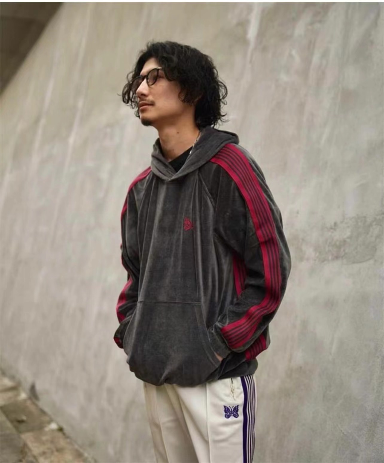 Needles tracksuits蝶ベルベットカーディガンレトロリボンジッパージャケットロングパンツスポーツスーツ