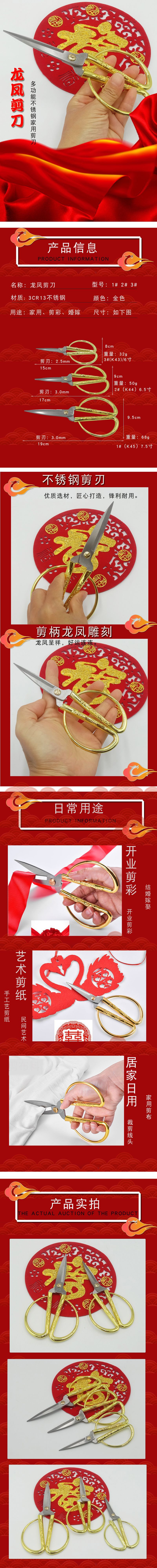 不锈钢龙凤剪刀 喜庆龙凤剪子开业剪彩剪刀家用裁缝剪 复古小剪刀
