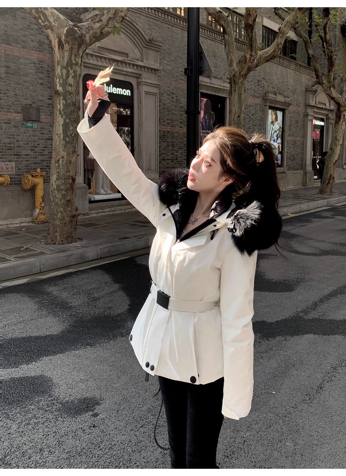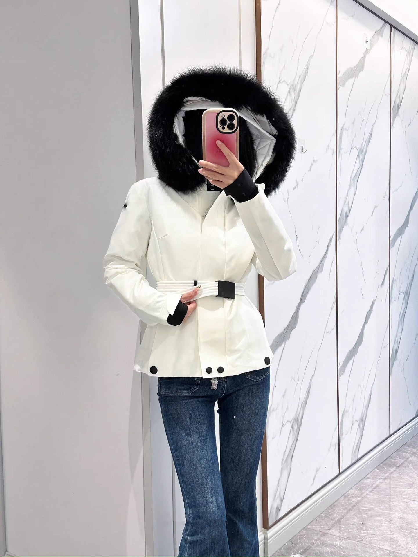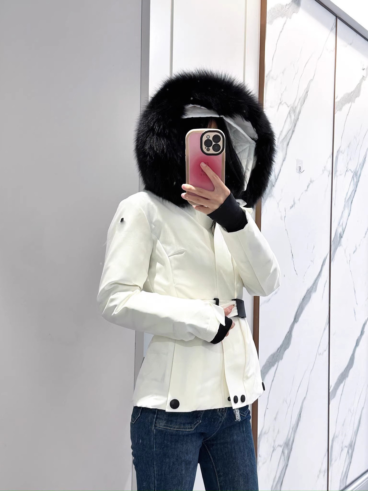 2025年冬新款m蒙家羽绒服女修身收腰鹅绒加厚狐狸毛领滑雪服休闲