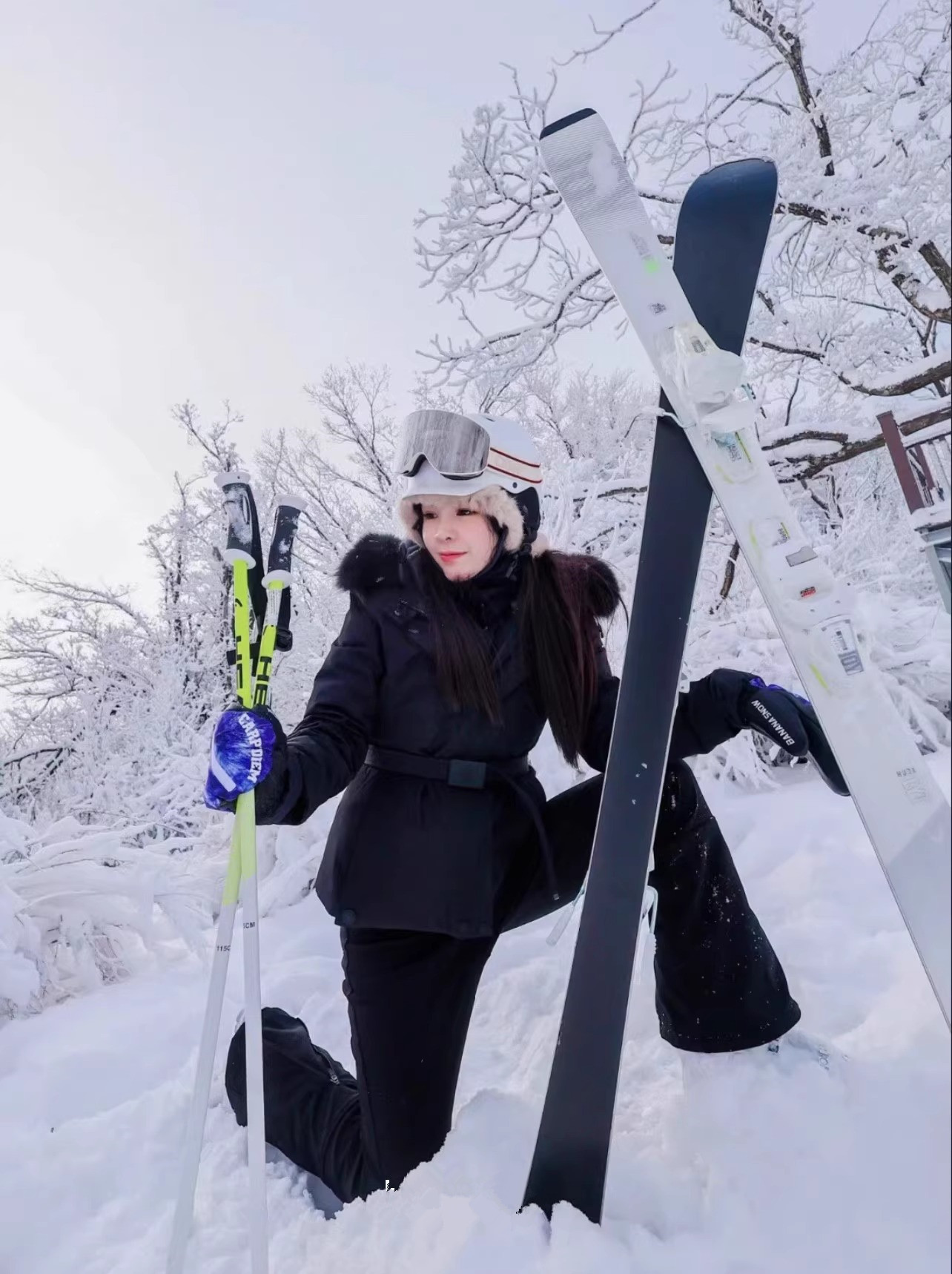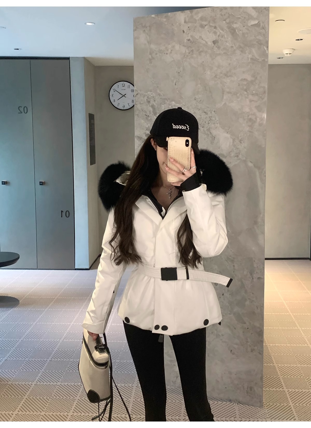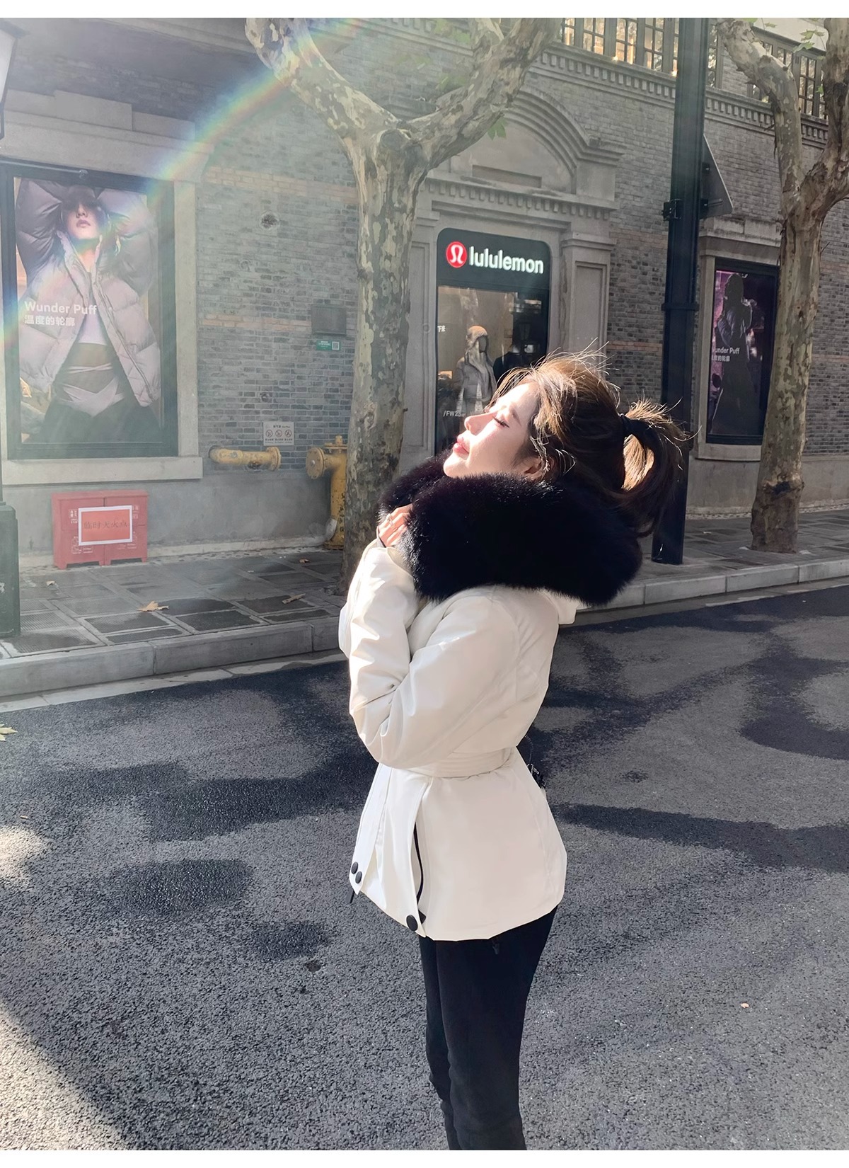 2025年冬新款m蒙家羽绒服女修身收腰鹅绒加厚狐狸毛领滑雪服休闲