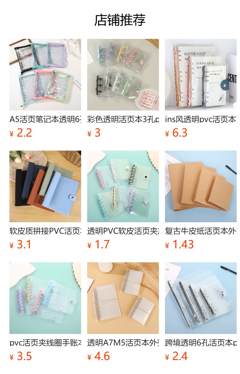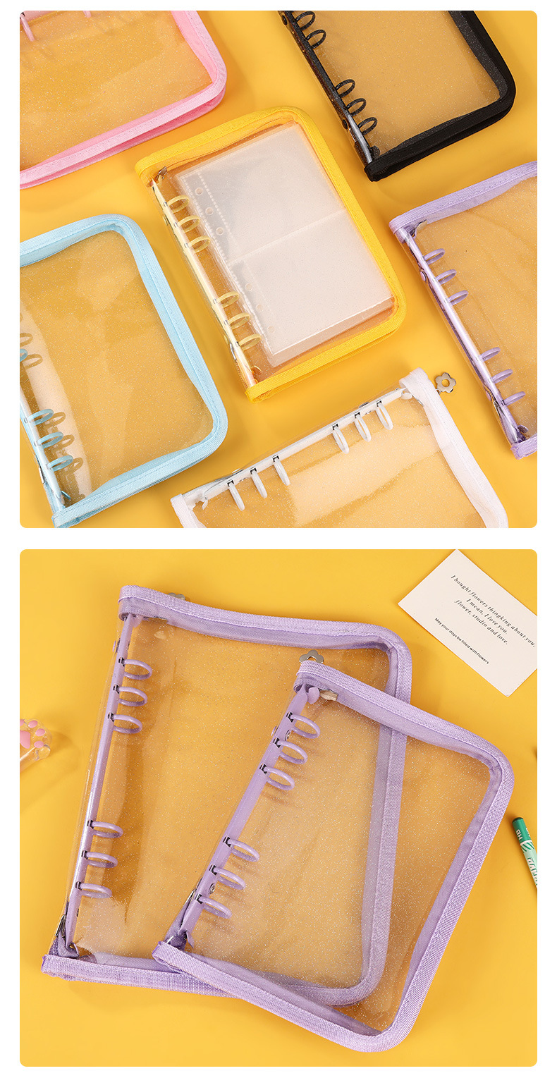 A5A6グリッターリーフリングバインダー、透明カードブック、ジッパー付きリーフリング手帳、ロゴ・パターン印刷カードアルバム収納ブック