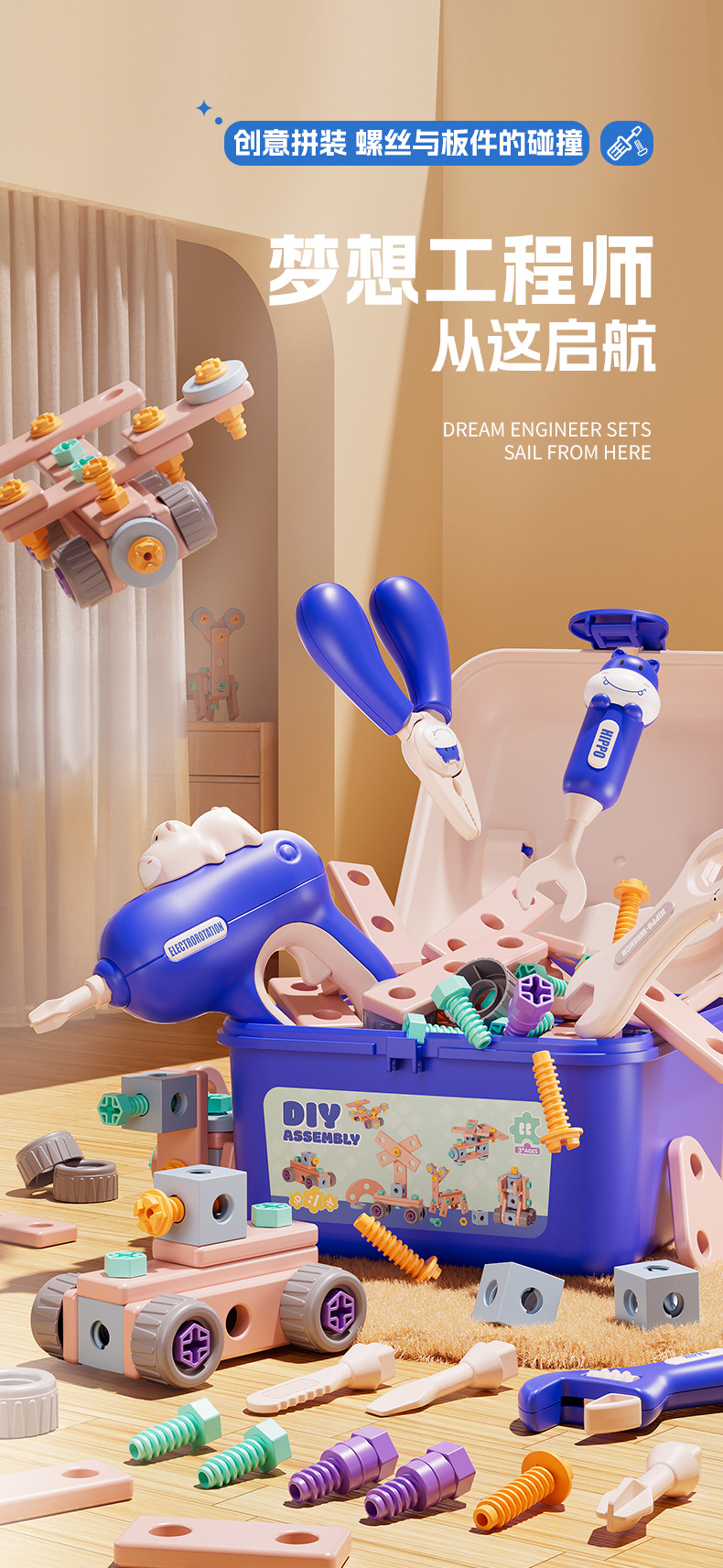 子供用スクリューDIYカバ工具箱修理分解ドライバー電動手動ナット玩具