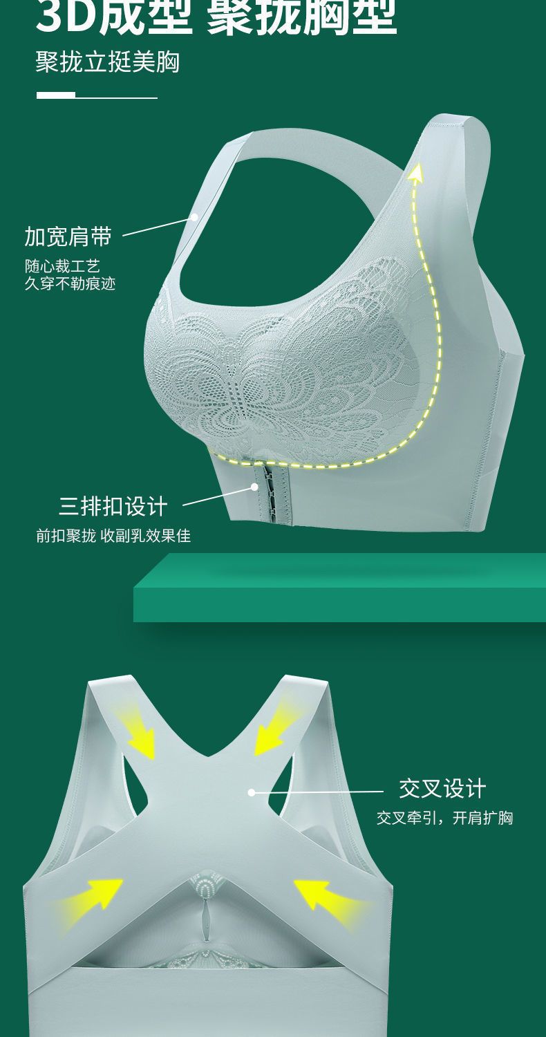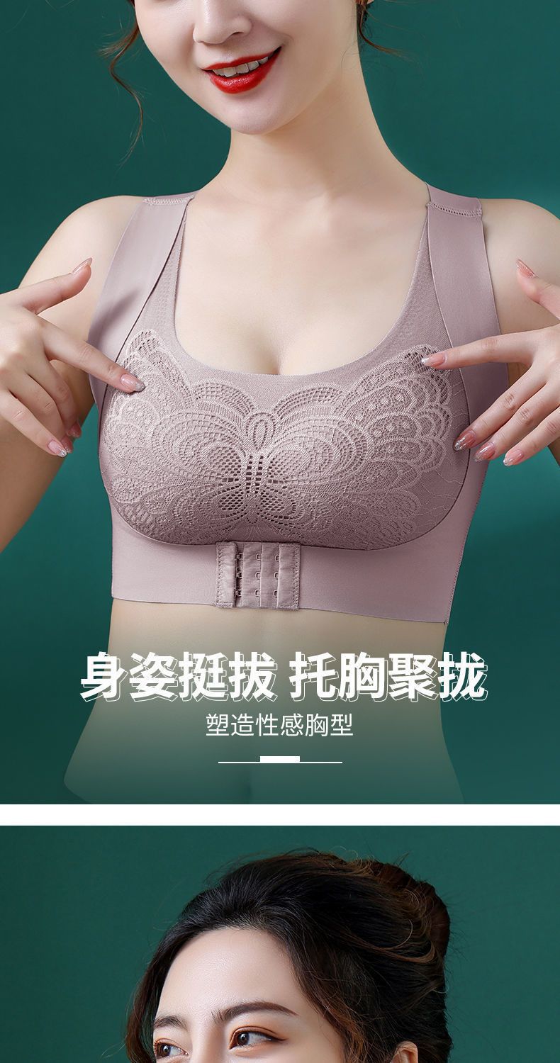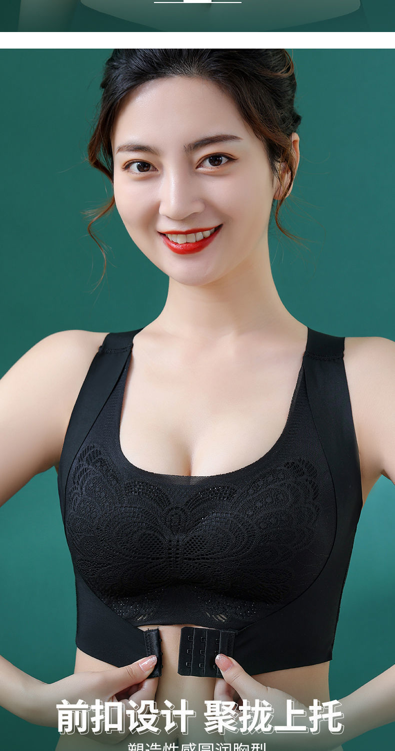 二合一の跡のない前ボタンには、スチールリングのない下着の女性矯正防走光美背レースのスポーツブラジャーがあります。