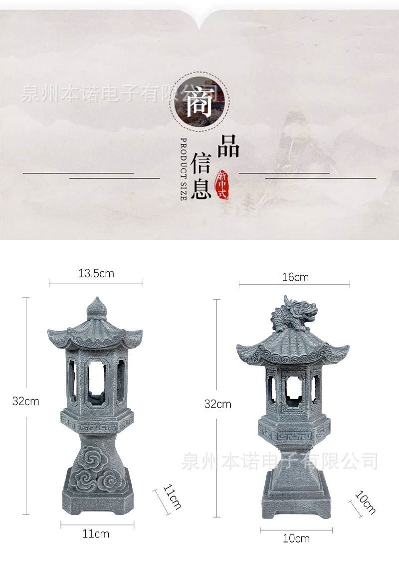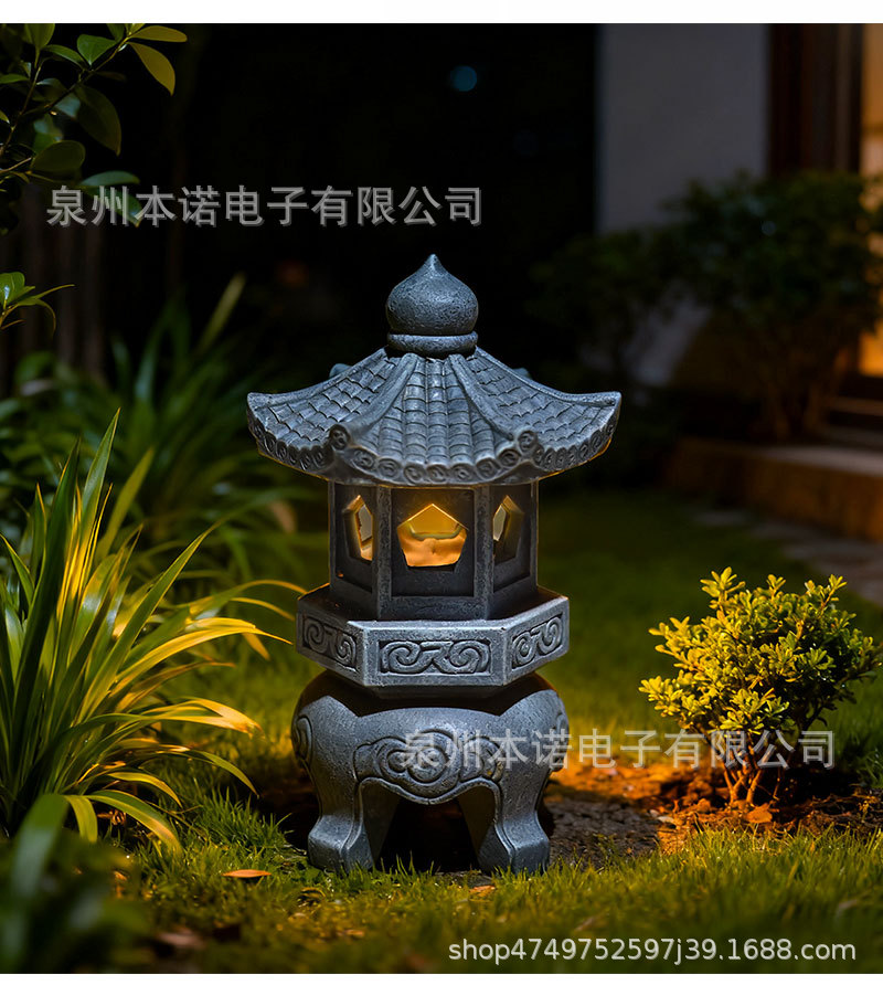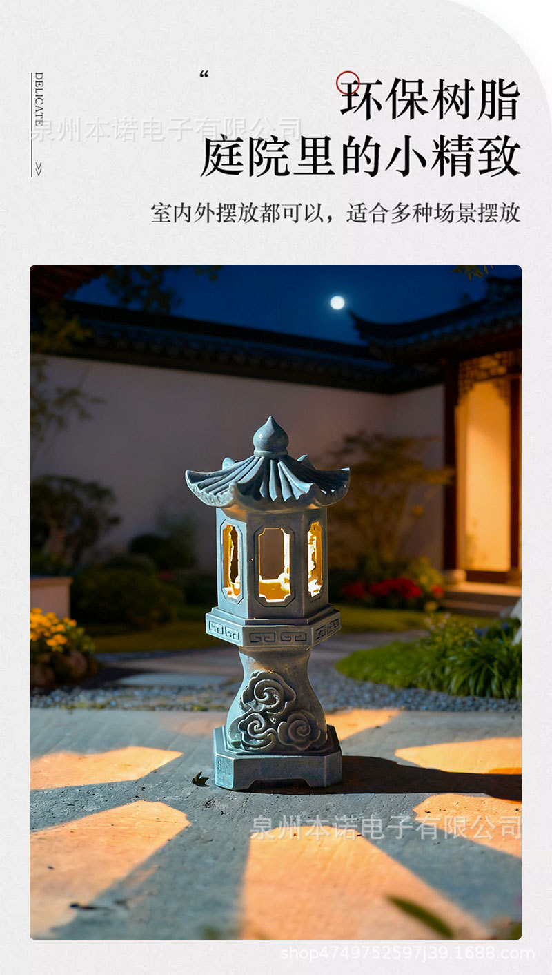 屋外石塔宮殿ランタンガーデンランプ装飾品寺院禅庭樹脂装飾装飾品ソーラー像ランプ