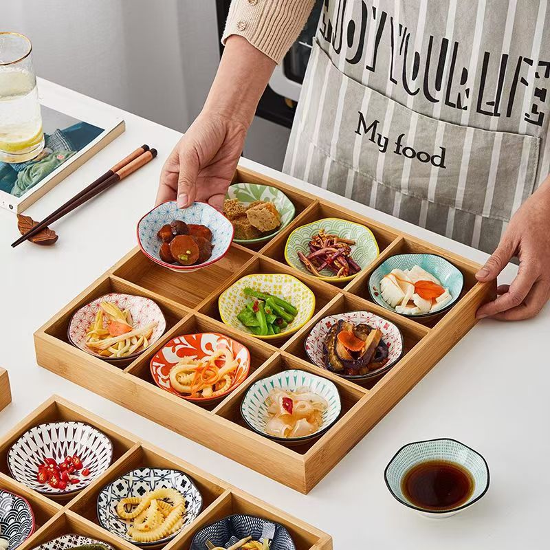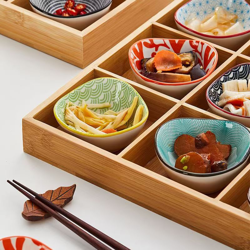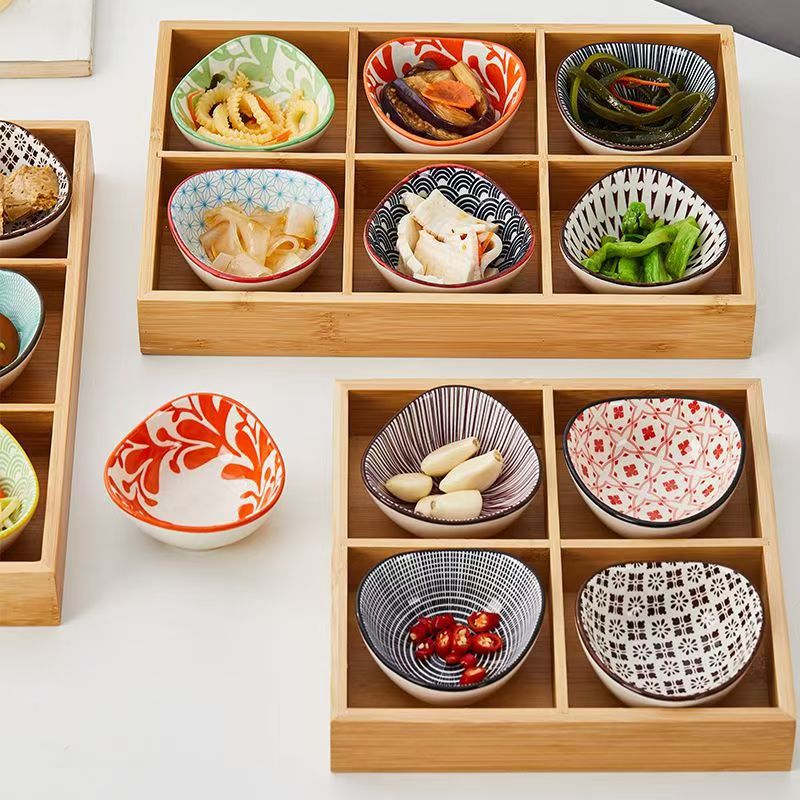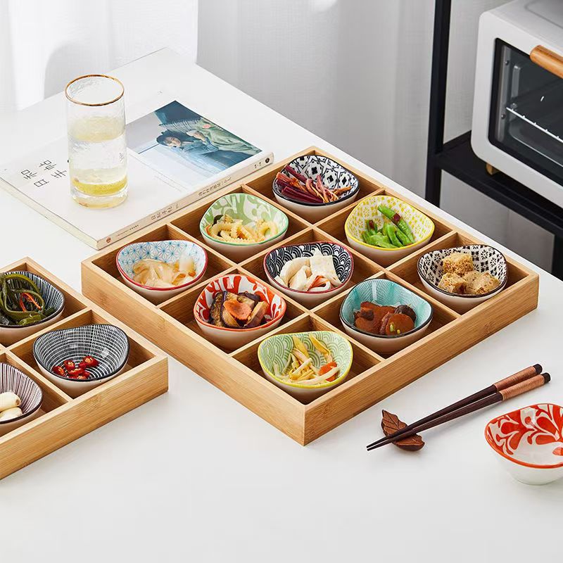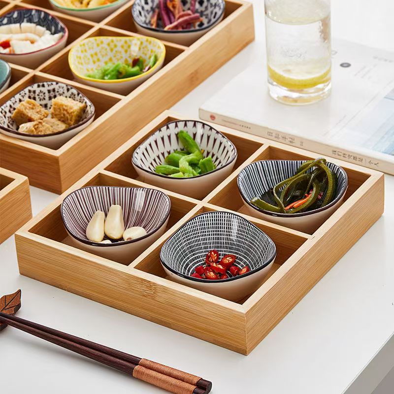 囲炉竹木九宮格食器皿火鍋店ソース皿野菜トレー焼肉木皿盛り合わせ