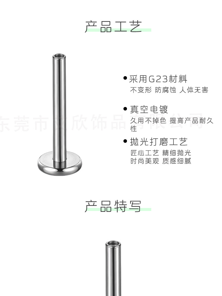 チタン合金リップネイルベース耳ネイル平底ロッド 4mmF136 雌ねじピアスジュエリー内歯舌ネイルアクセサリー