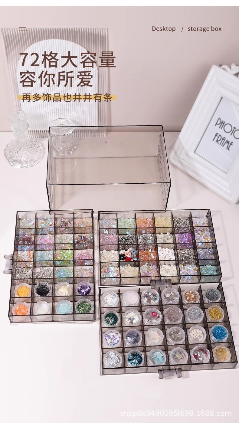 ネイルアートアクセサリー収納ボックス-透明72コンパートメント,ネイルアートアクセサリー収納ボックス - 透明グレー 72コンパートメント,ネイルアートアクセサリー収納ボックス - 透明茶 72コンパートメント