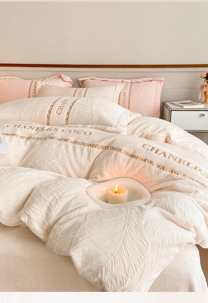 軽豪華な高級彫刻ベルベットはベッドの上の4セットの冬の牛乳サンゴのベッド用品フランネルの布団シーツを厚くした