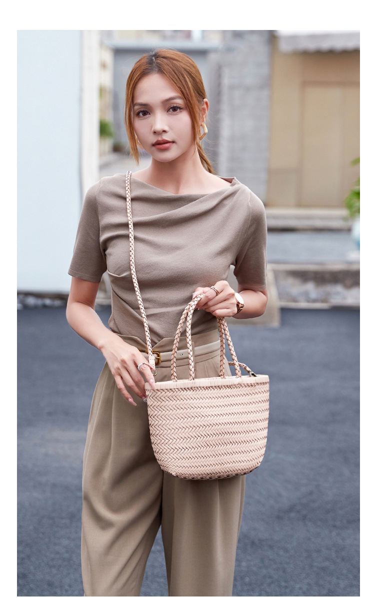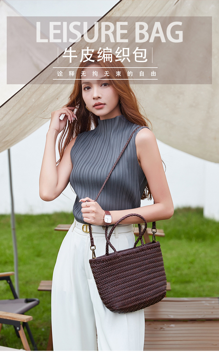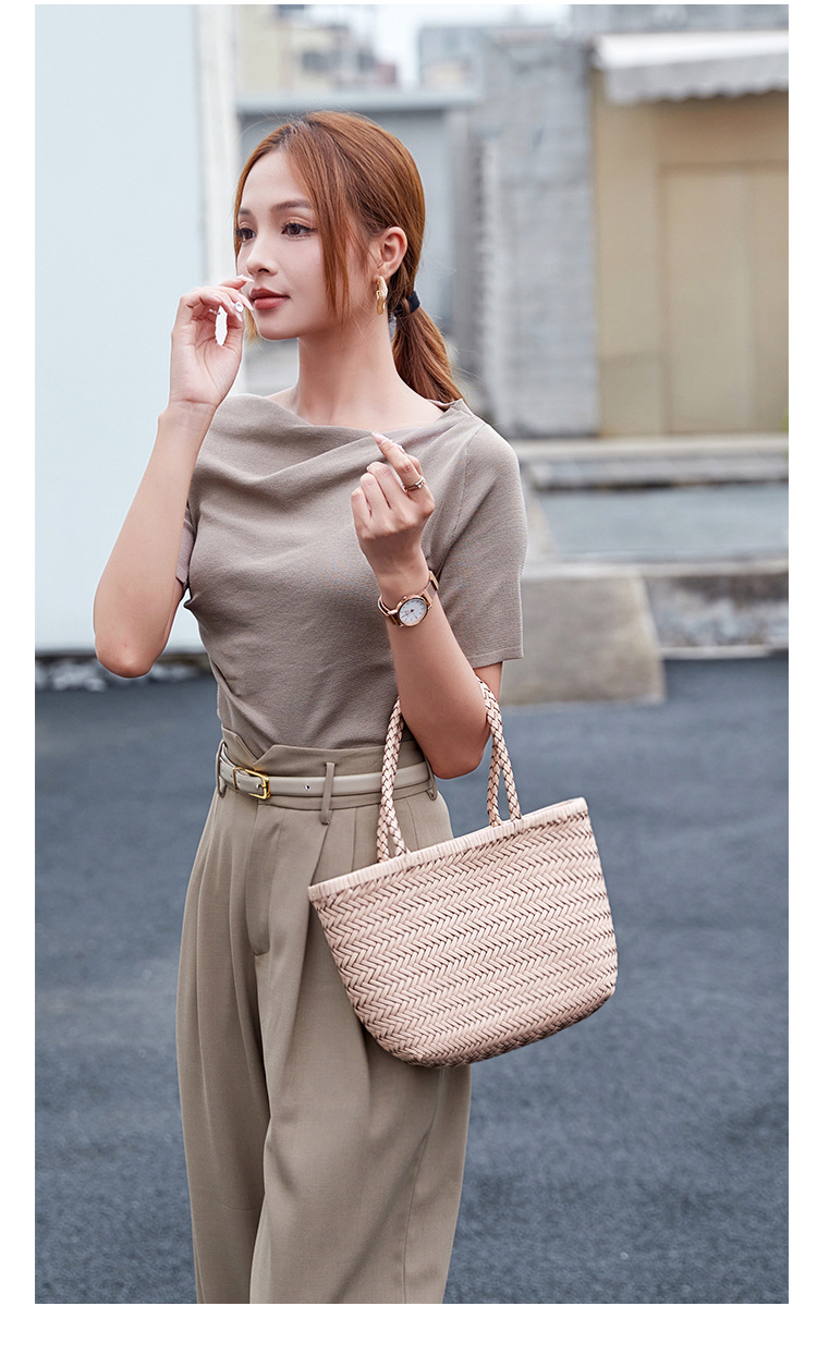2025春新作ニットバッグdragonフレンチバスケット本革斜めがけショルダーバッグレディースインスタ风