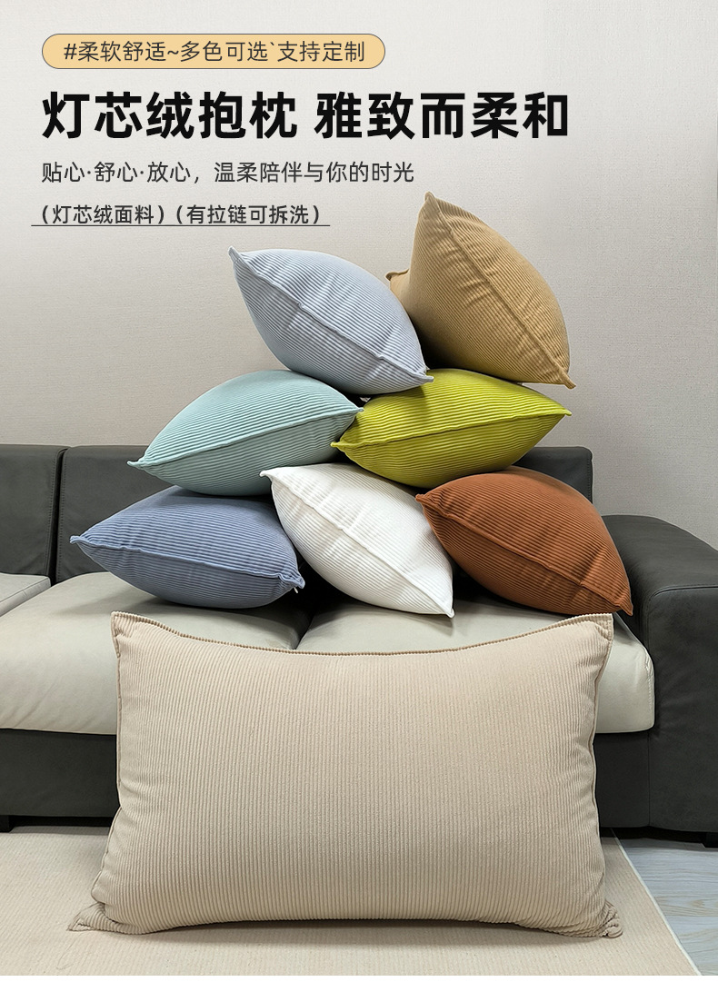 新品コーデュロイ長方形ソファクッション抱き枕大クッションリビングベッドバックカバー高級感