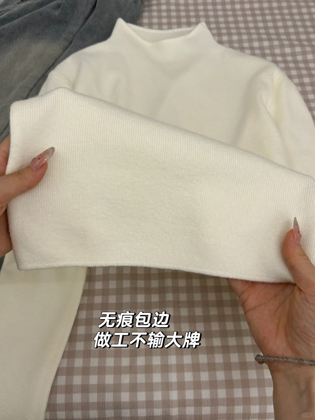 KANING日系シンプル半高襟ニットシャツ女性2025秋冬柔らかいモチ長袖インナーセーター上着