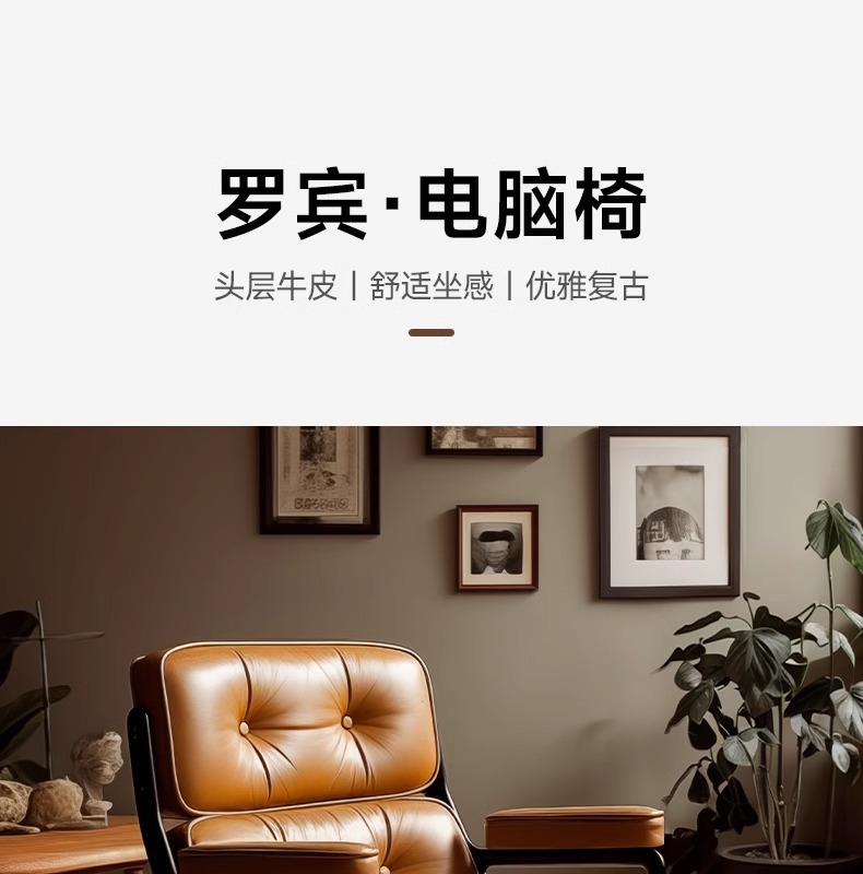 ロビンコンピュータ椅子快適長居家庭用書斎椅子本革レトロ椅子オフィス椅子ソファー椅子回転椅子