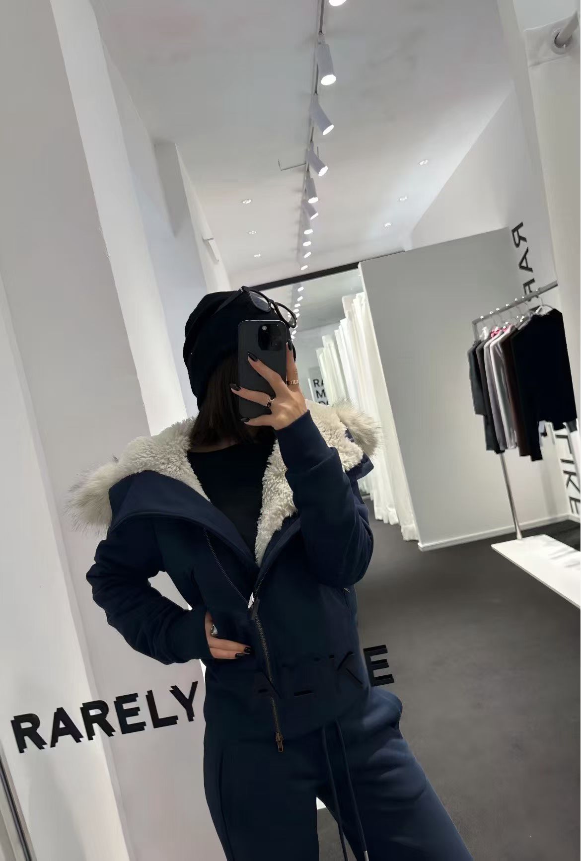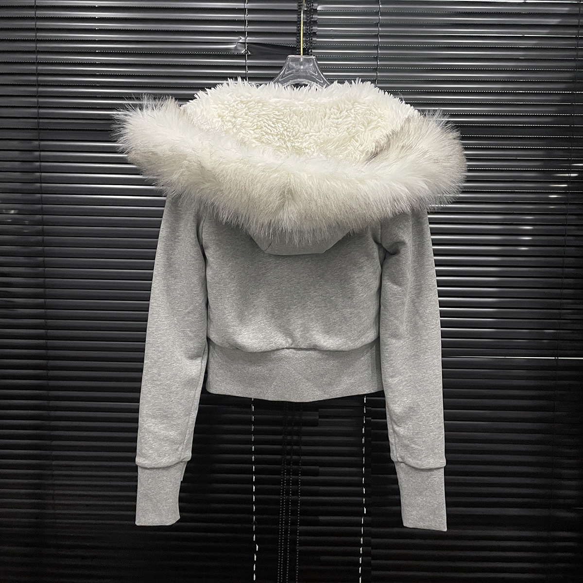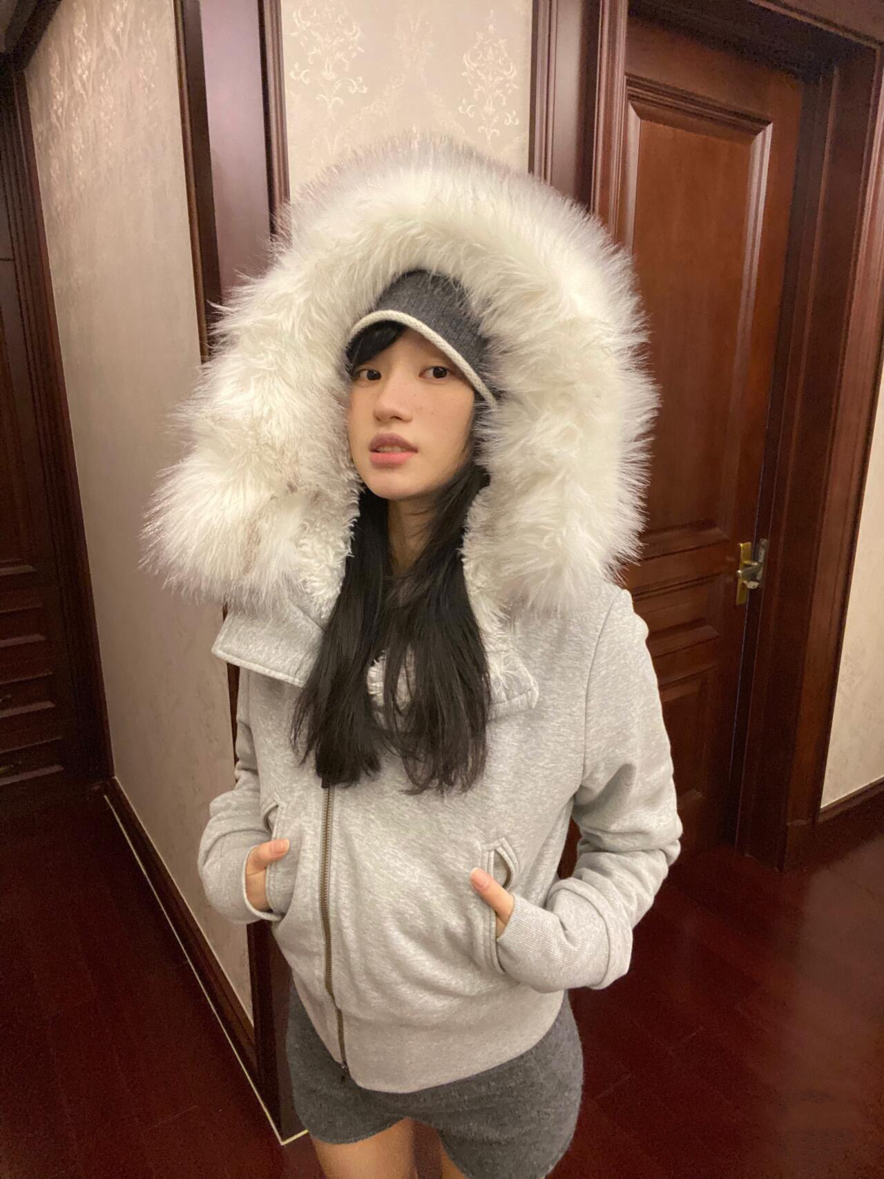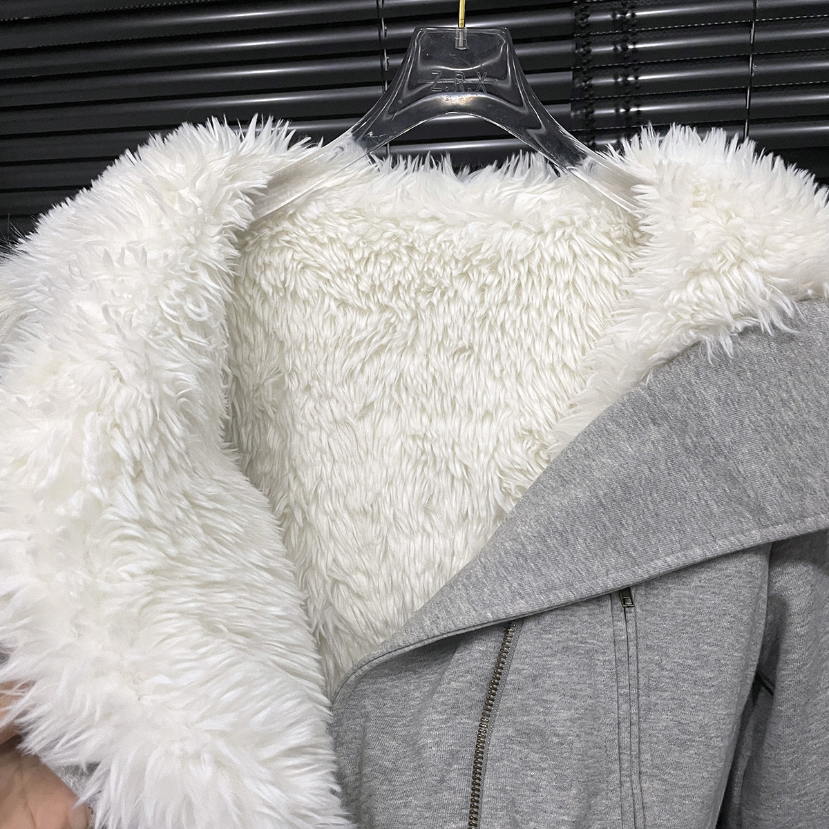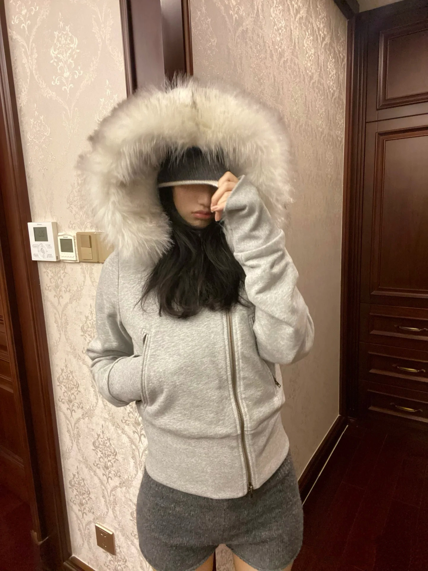 在庫あり RA***秋冬フード付きファー襟付き裏起毛ショート丈スウェットジャケットレディース着痩せ効果ジッパー付き綿入りジャケット