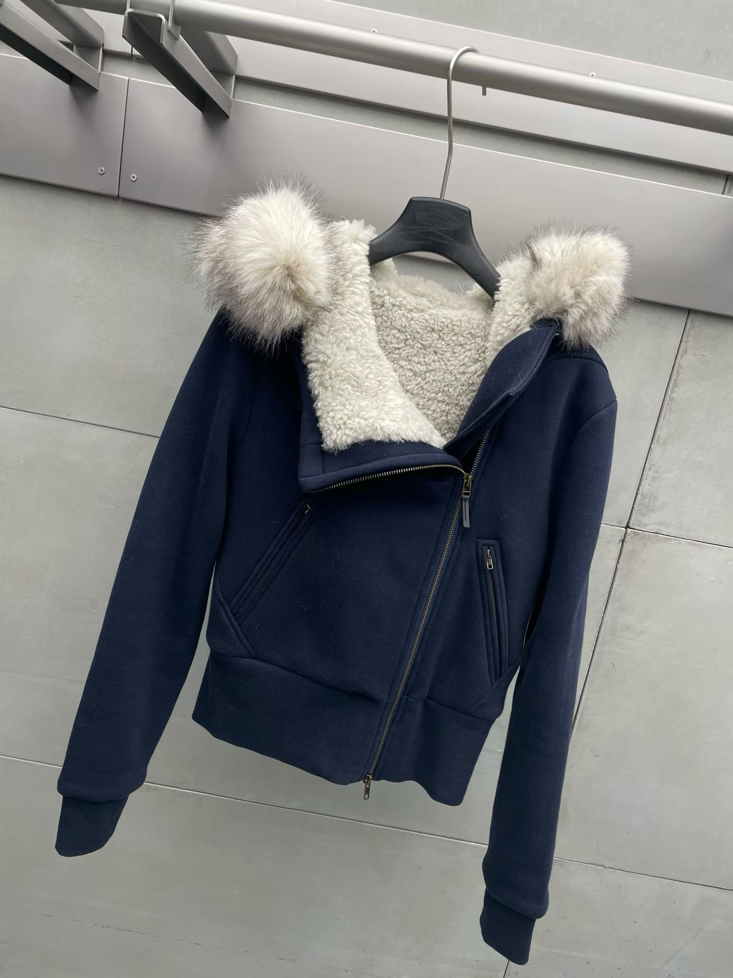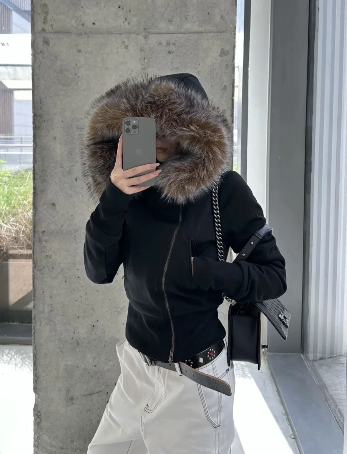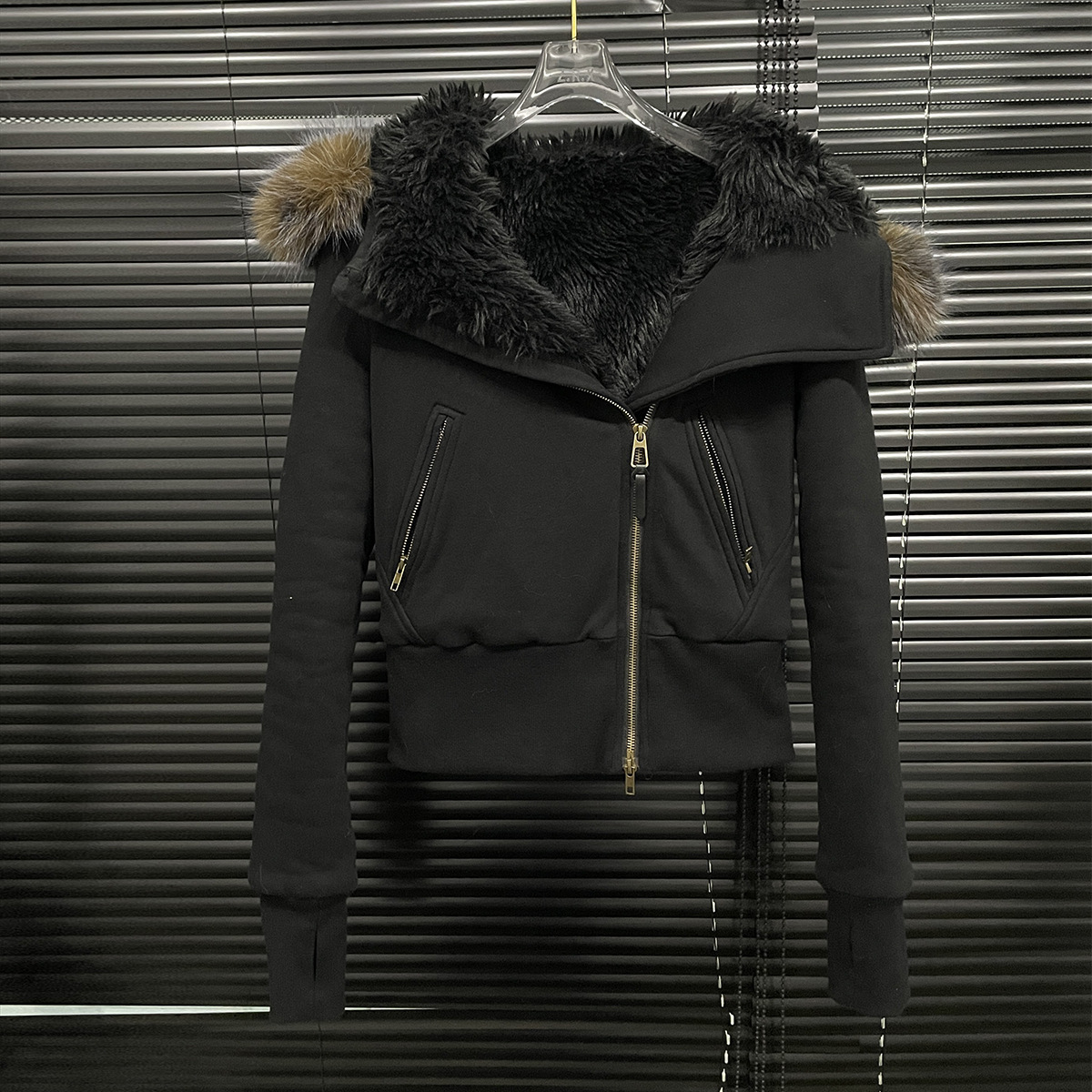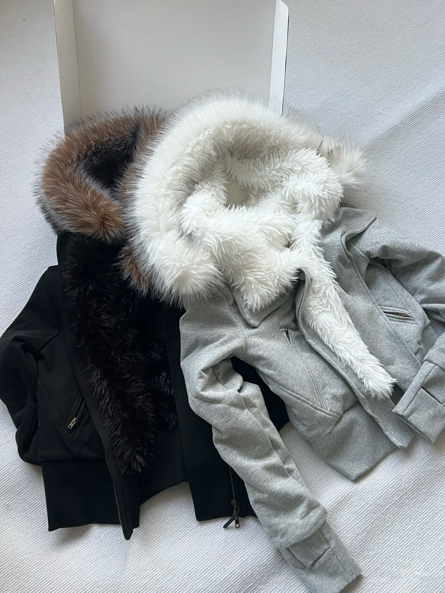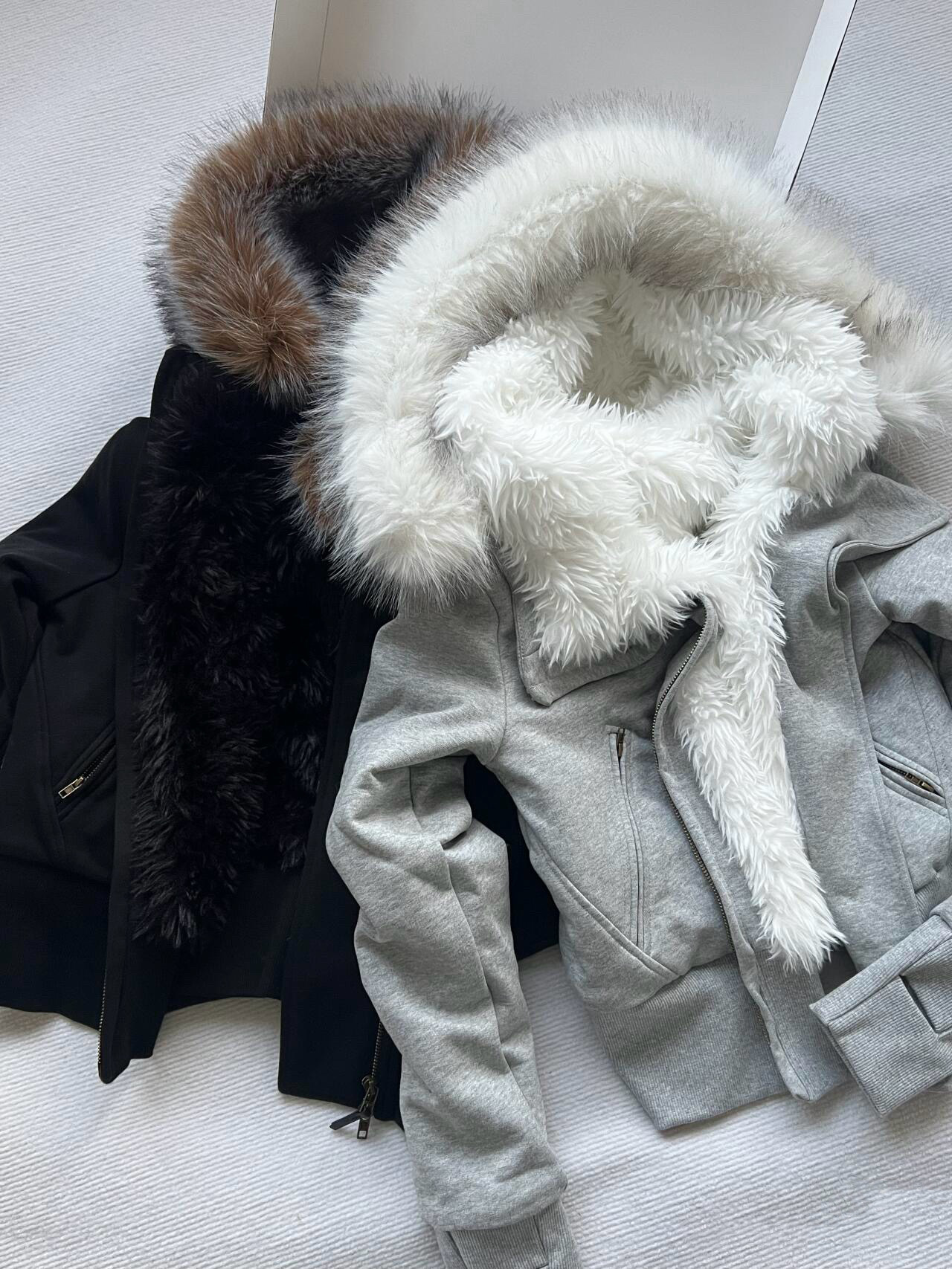 在庫あり RA***秋冬フード付きファー襟付き裏起毛ショート丈スウェットジャケットレディース着痩せ効果ジッパー付き綿入りジャケット
