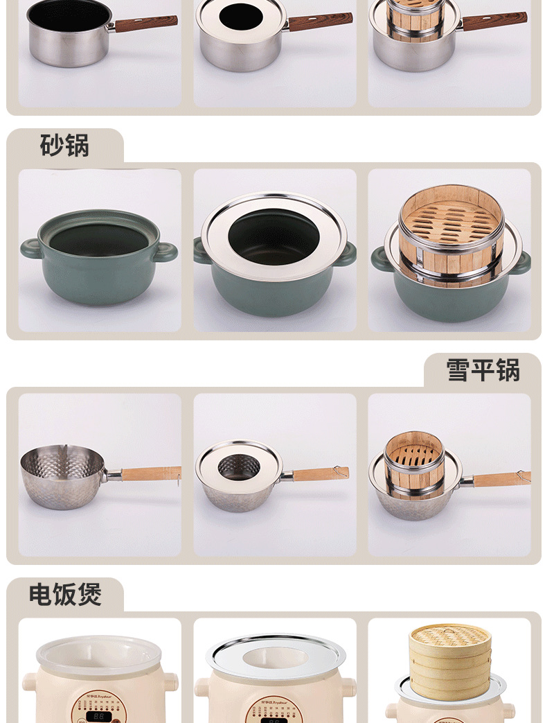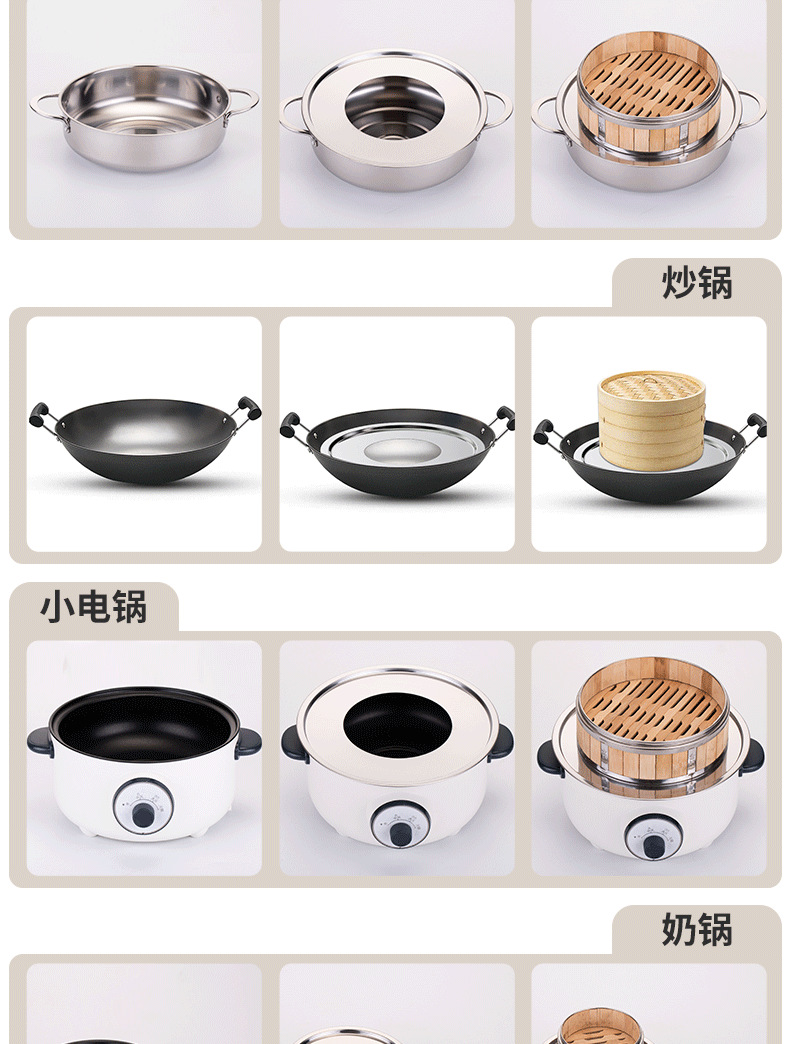 ステンレス蒸し器円形家庭用蒸し器蒸し器フライパン土鍋雪平鍋万能蒸し器棚