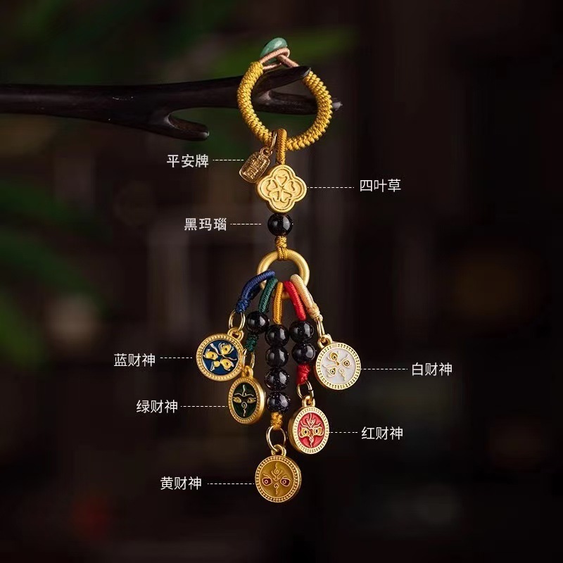 新商品の国潮風唐カード五路財神のキーホルダーは幸運の創意の手作りの自動車の鍵を掛けて贈り物をします。