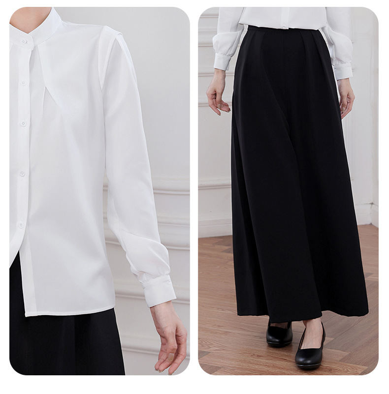 【2点セット】白長袖シャツ+黒パンツスカート