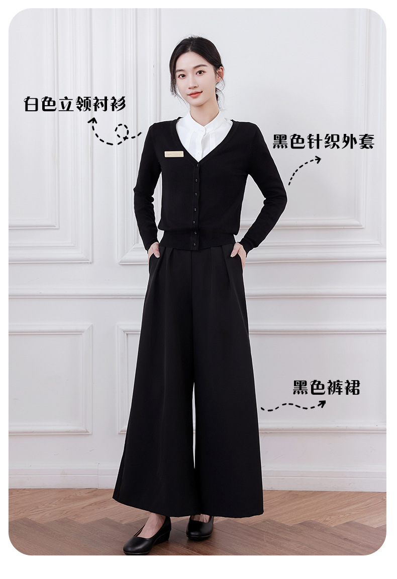 【3点セット】白長袖シャツ+ニットジャケット+黒ロングスカート,【3点セット】白長袖シャツ+ニットジャケット+黒パンツスカート,【3点セット】白長袖シャツ+ニットジャケット+黒タッセルパンツ,【2点セット】白長袖シャツ+黒ロングスカート,【2点セット】白長袖シャツ+黒パンツスカート,【2点セット】白長袖シャツ+黒フリンジパンツ,白い長袖シャツ,黒のニットジャケット,黒のロングスカート,黒のパンツスカート,黒のフリンジ付きパンツ