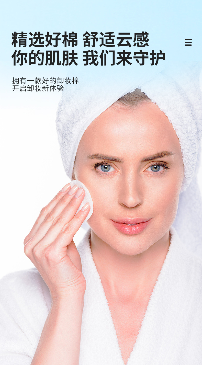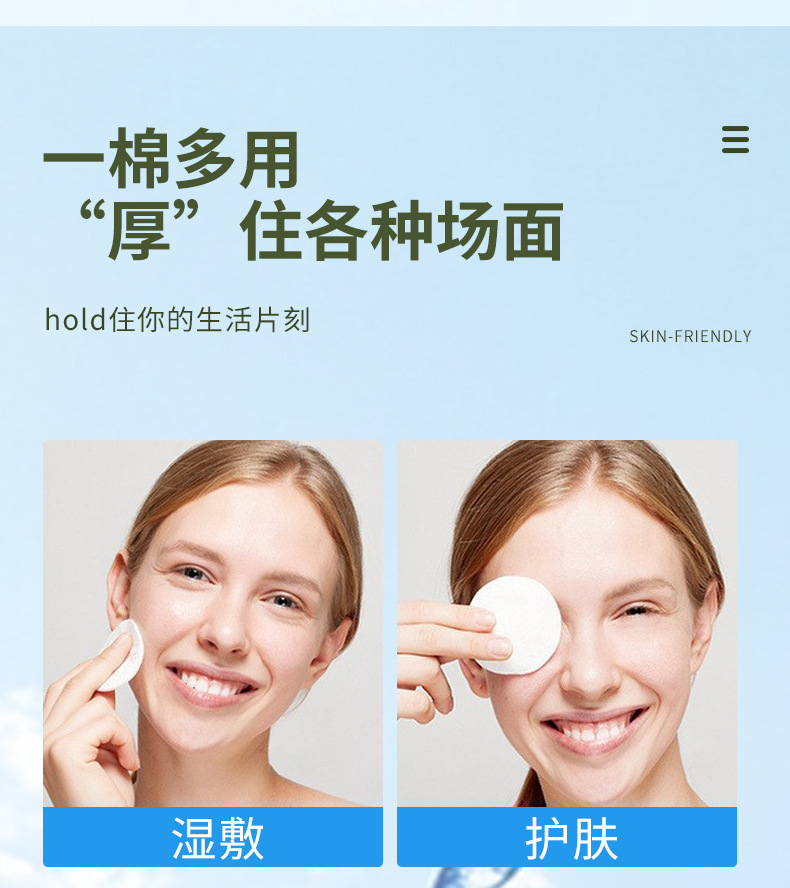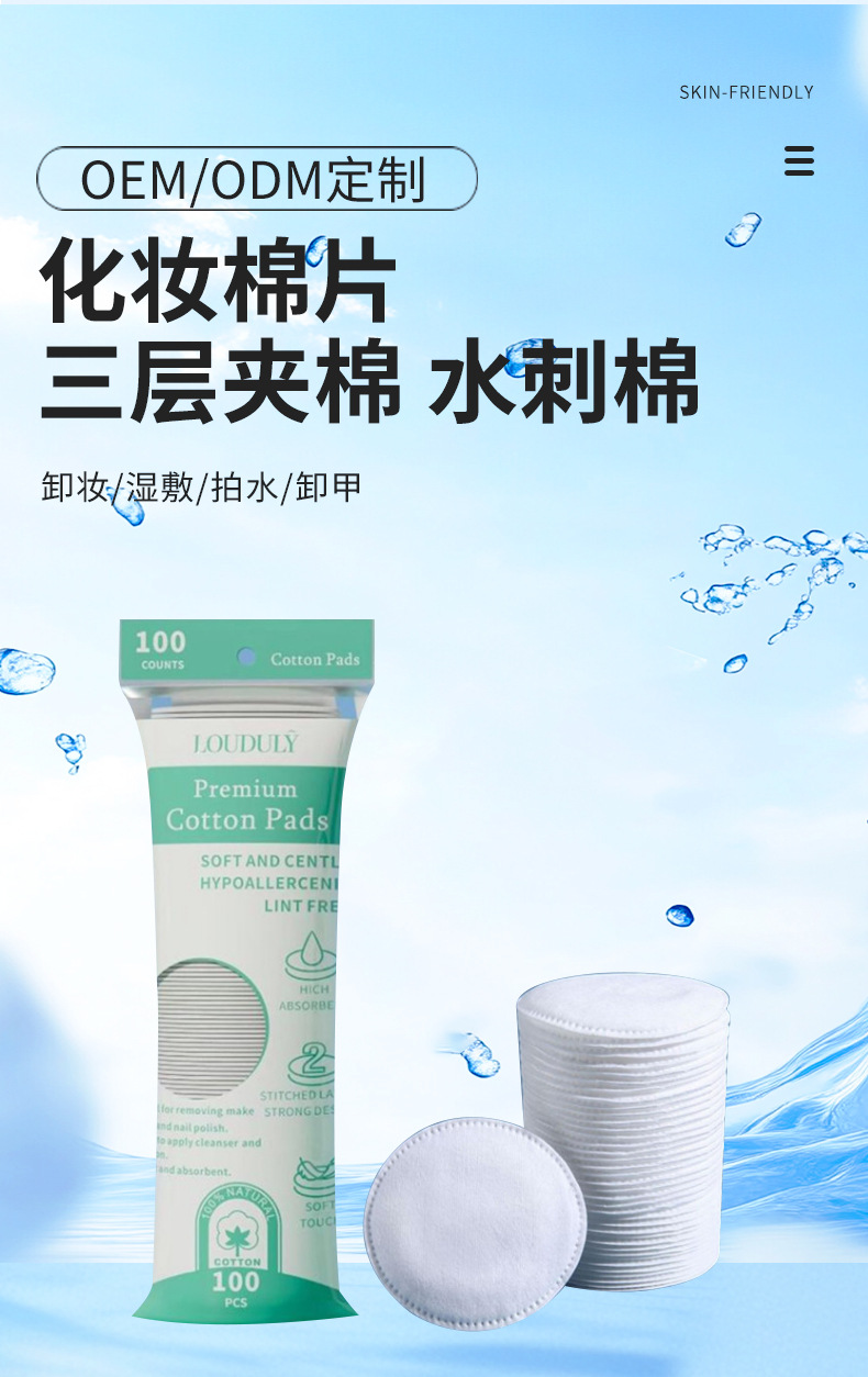 英語表記の丸型化粧用コットン、水刺織り綿100%、3層構造、綿入り、針穴縫い、模様入り、厚手のメイク落としコットン