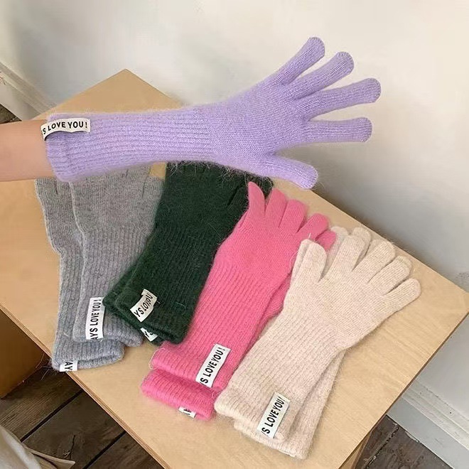 Insキャンディー色の長いタイプのウサギの毛の手袋の冬の女性の韓国版のメリヤスの純色は厚くて保温して防寒して5本の指に乗ります。