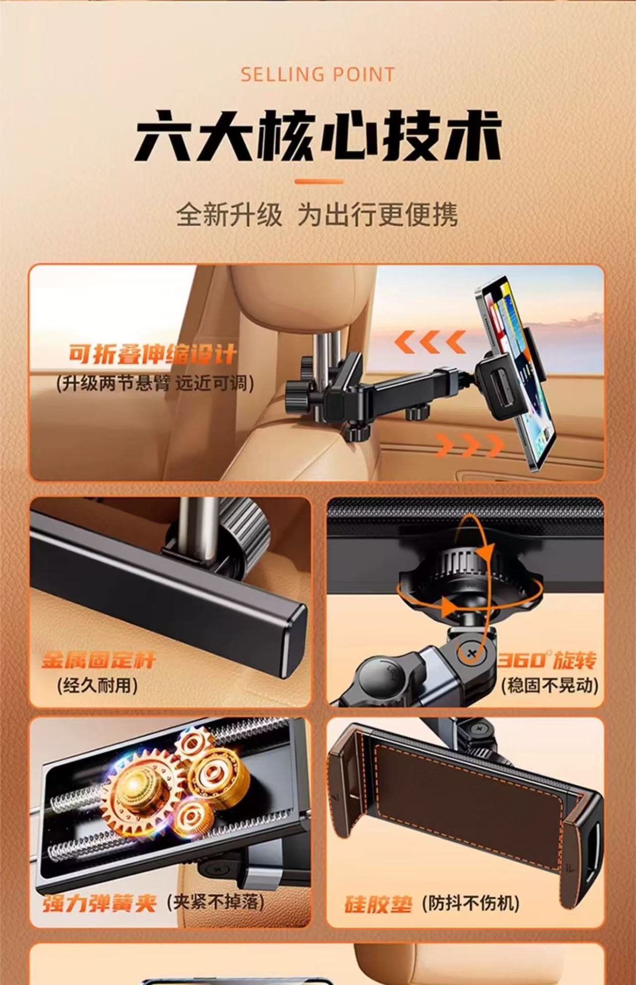 車の後部枕ブラケットの完全なセット,車の後部枕ブラケット 70% off スタックの完全なセット,独立した車の後部ピローポール,個別に折りたためるダブルプルタブレットクリップ,個別ダブルプルフラットクランプ