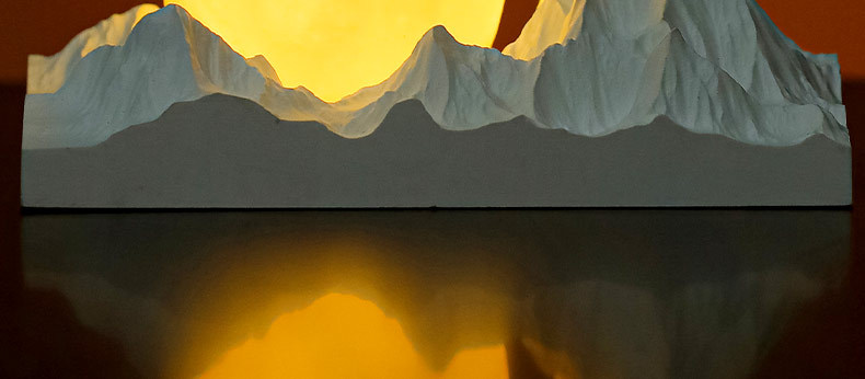 夕日の山と海