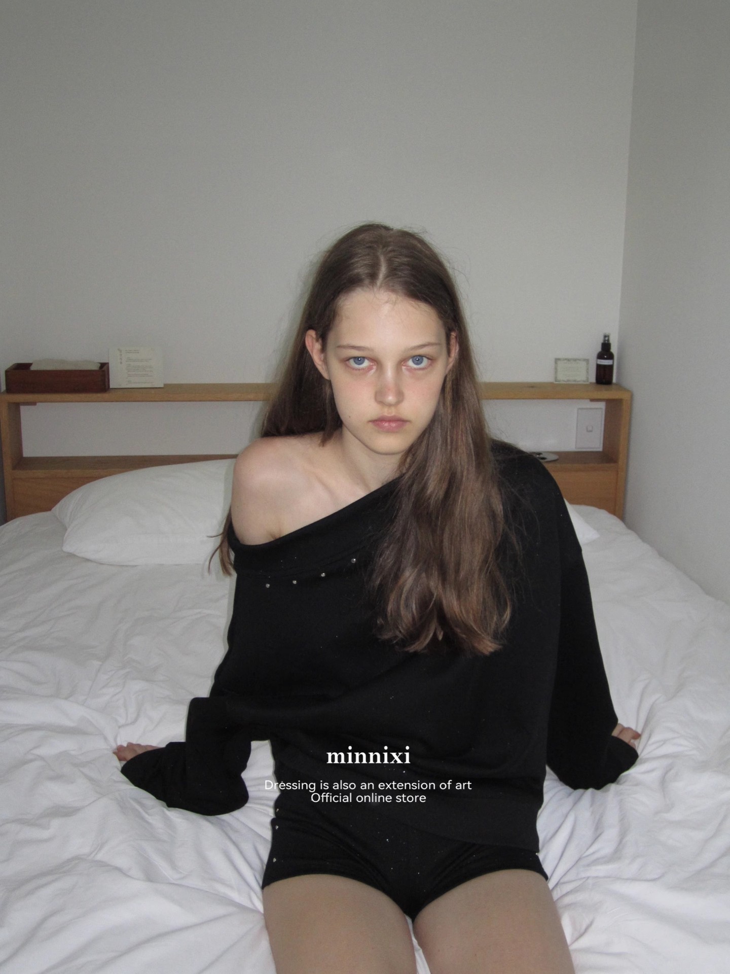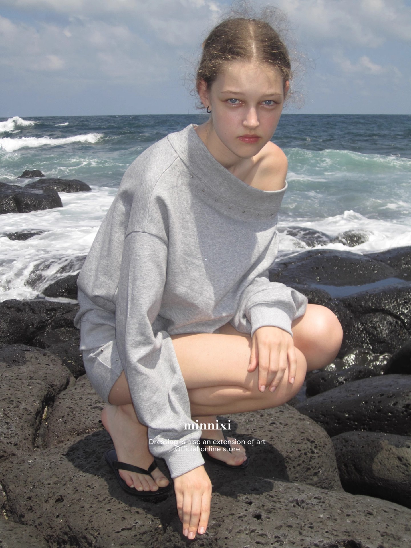 2024 新しいオリジナルデザインのニッチなオフショルダーリベット付き長袖スウェットシャツ、女性用、人気のレイジーホットガールスタイル