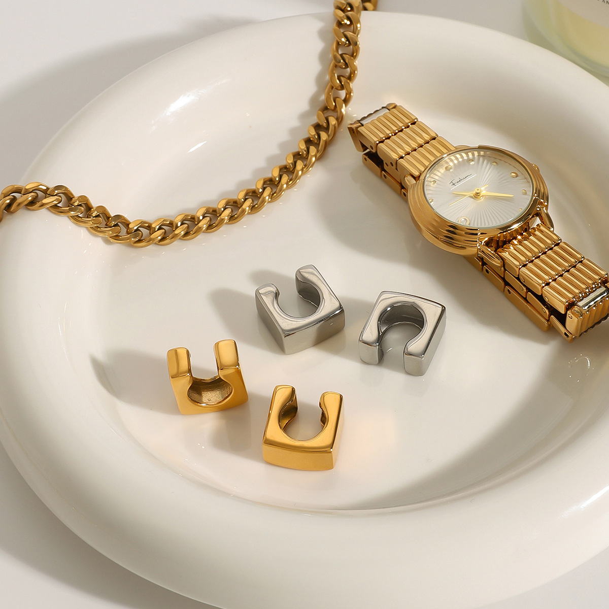 傑鼎欧米のステンレスの幾何学のイヤリングの高級感の小さい衆の耳の骨はチタンの鋼の耳の装飾品を挟みます越境します。
