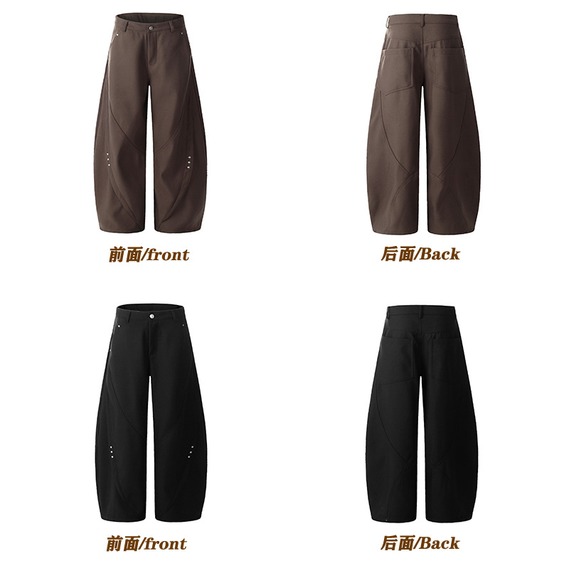 C828 アメリカンレトロハイストリート秋冬ユニセックスカーブドデザイン高級感ルーズフィットメンズカジュアルワークパンツ
