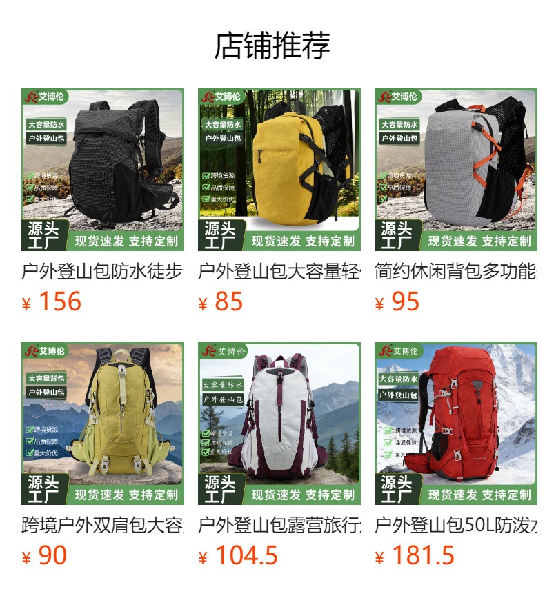 、城市通勤风、街头潮流风、学院风、日系户外风、美式户外风、专业登山风、露营风、徒步探险风、高海拔探险风、撞色设计、拼接设计、轻量化外观、立体轮廓、大开口设计、硬挺版型、软质版型、大容量轮廓、短款紧凑版型、长款专业版型、反光条设计、品牌LOGO设计、多色可选、骆驼、小鹰、探路者、凯乐石、牧高笛、强氧、奥尼捷、日高、伯希和、三峰出、极地、杉木山装、艾王、回力、耐沃、玛丁图、五角星