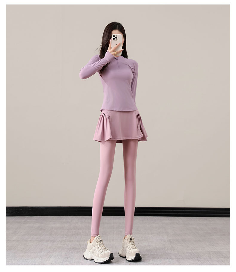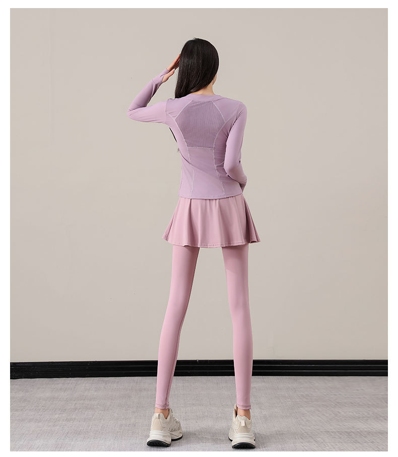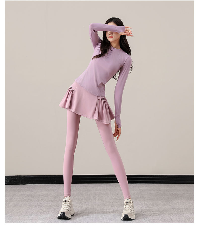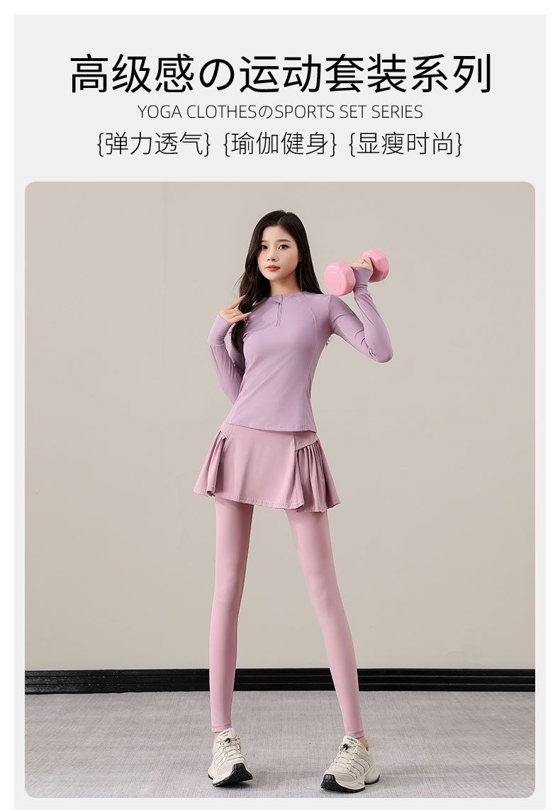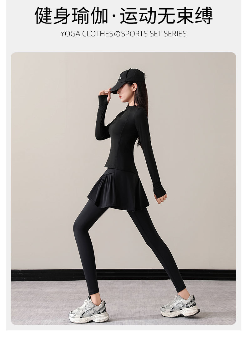 テニス服女性秋冬ランニングスポーツスーツ2024新型朝ランニング服ファッションヨガスカート長袖フィットネスウェア